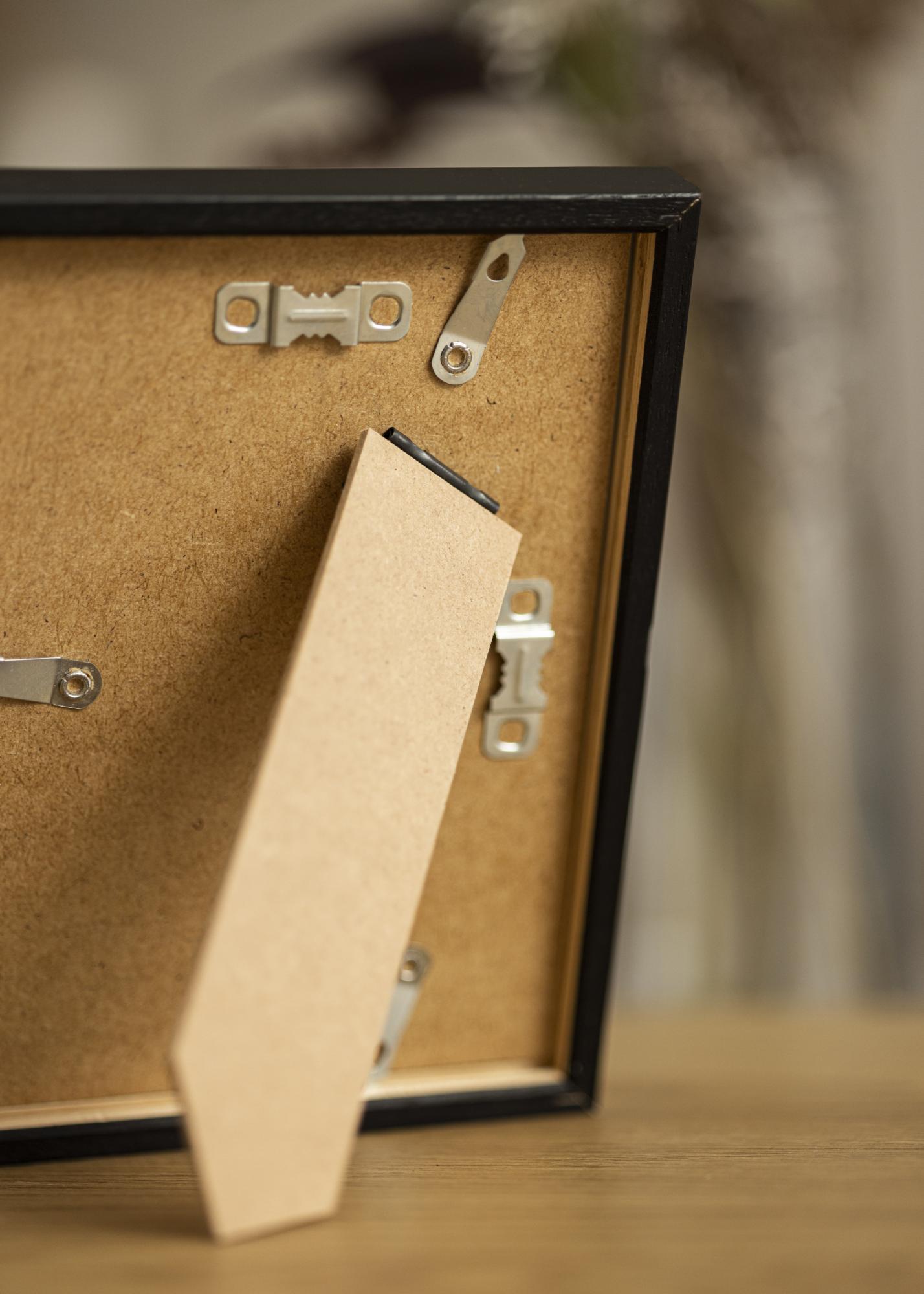 Рамката е 12 мм широка и 20 мм дълбока, което придава отличителен профил и дълбочина. Матовият завършек допълва белия цвят на паспартуто и създава хармонично цяло. С металните окачвачи, които се доставят на гърба, рамката може лесно да се закачи както хоризонтално, така и вертикално, което осигурява гъвкавост при поставяне на стената.