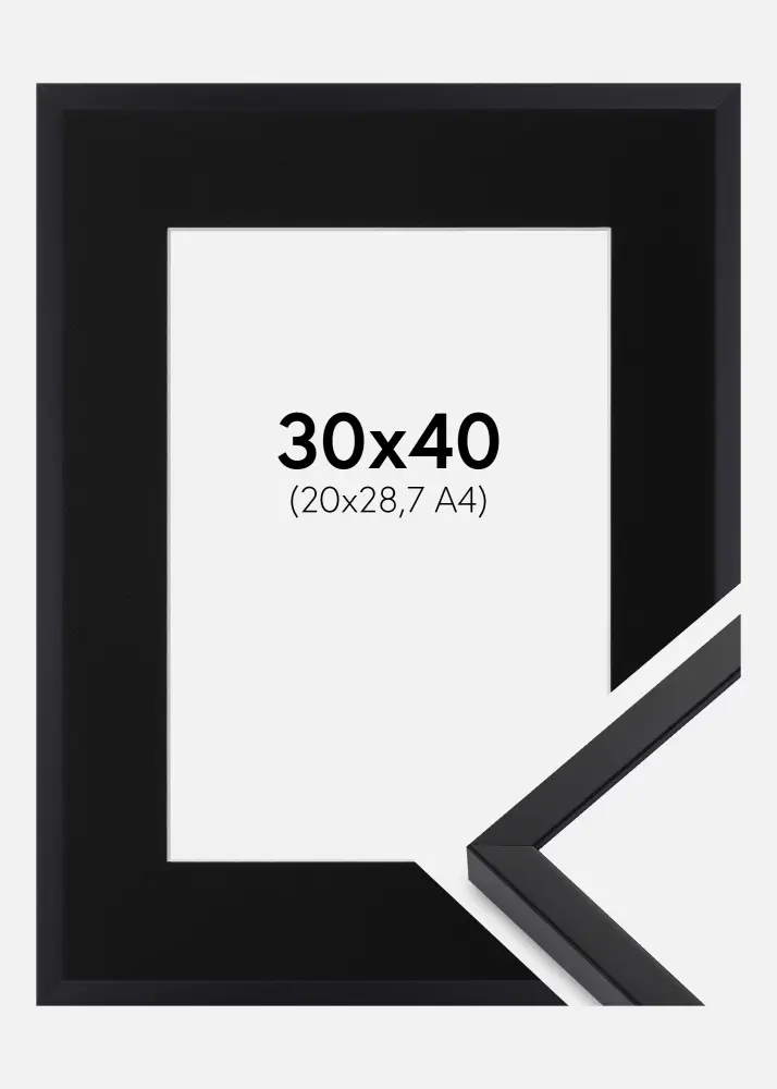 Рамка E-Line Черно 30x40 cm - Паспарту Черно 21x29,7 cm (A4)
