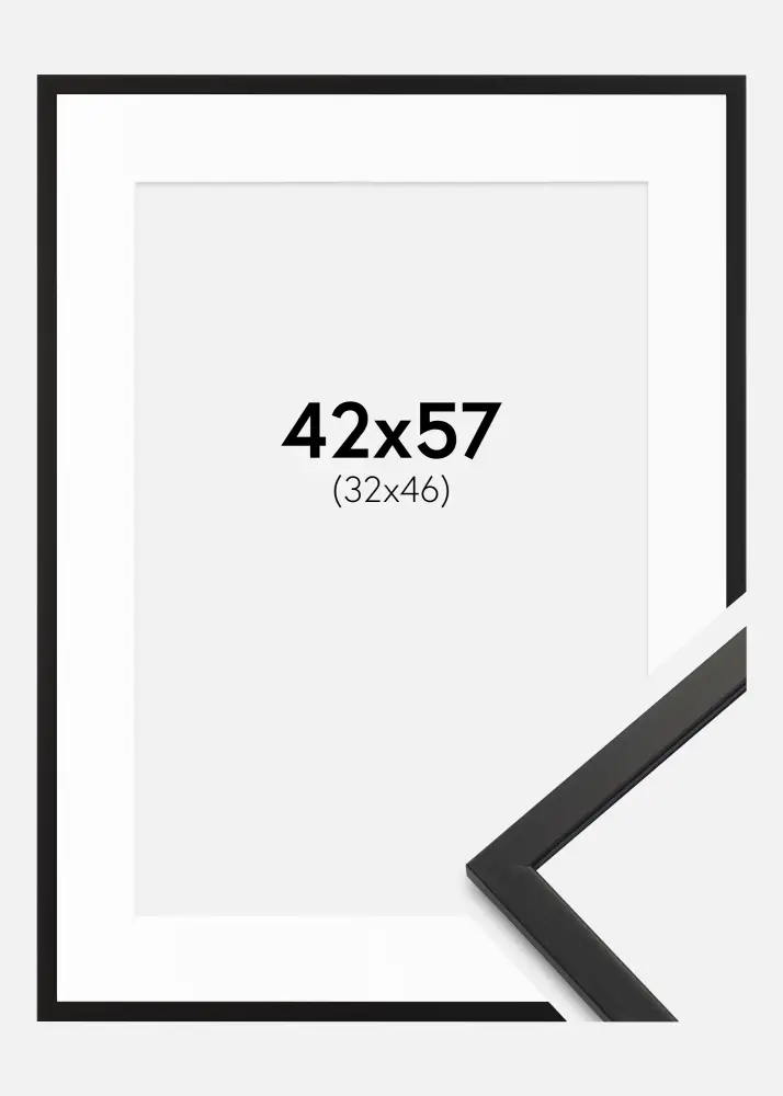 Тази елегантна черна рамка с паспарту е идеалният избор за подчертаване на вашите любими снимки. Със стилен матов финиш и тънка ширина от 13 мм, тя придава съвременен и изискан вид. Паспатруто, в класическо бяло, обрамчва вашата снимка с размери 33x47 см и създава красив контраст, който подчертава мотива.