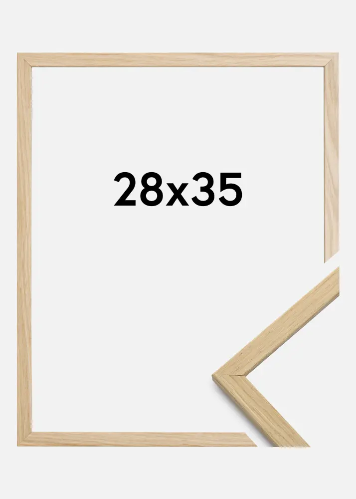 Понякога получаваме въпроса защо рамката е направена от дъбова фурнир, а не от истински масивен дъб, ако трябва да бъде качествена рамка. Причината за това е, че е трудно да се постигне контролирана повърхност, когато става въпрос за истински дъб, тъй като често се получават цветови вариации на различни части на дървото, което в някои случаи е подходящо. Но при рамка това би рискувало да изглежда така, сякаш частите от рамката са обезцветени.