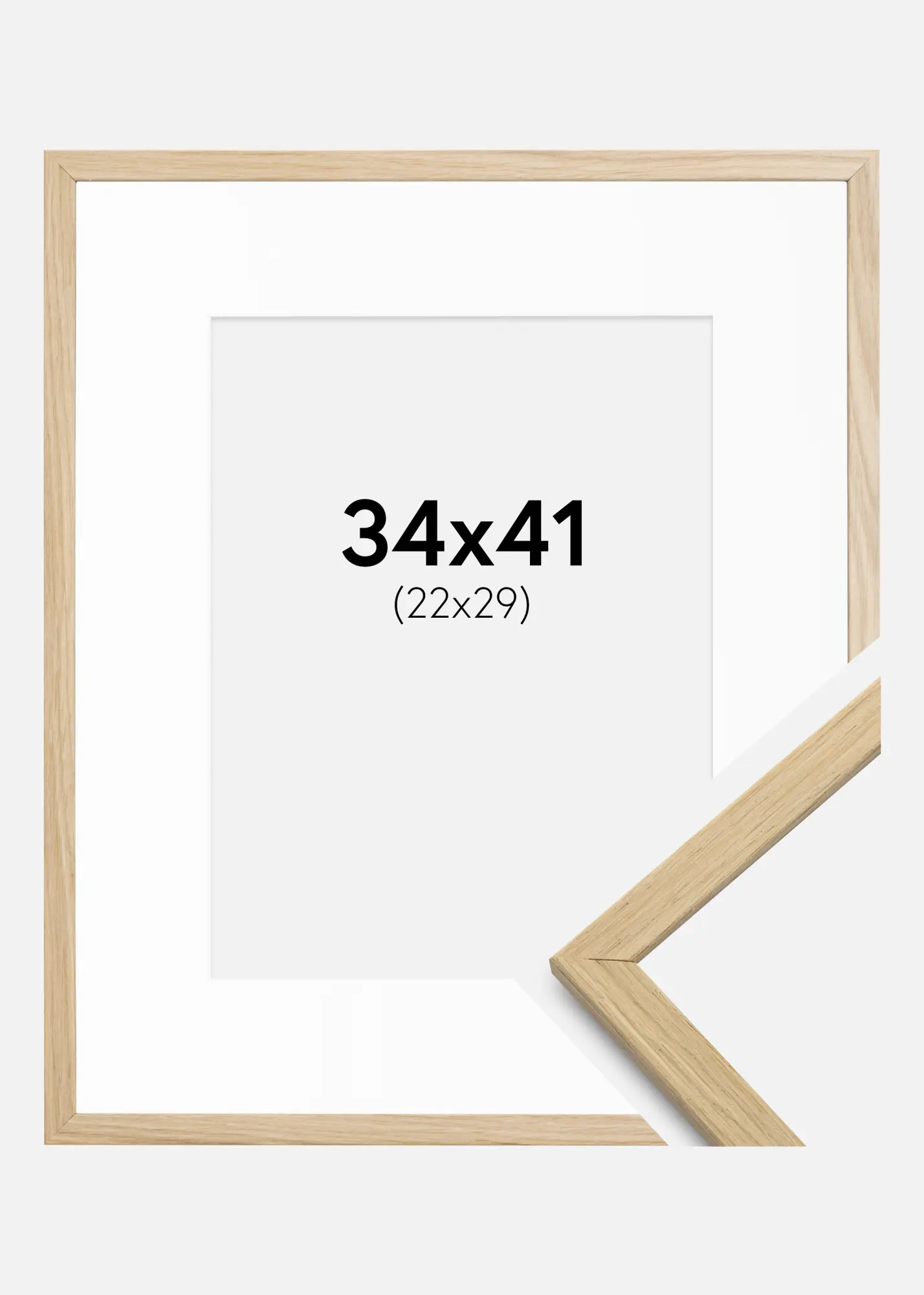 Рамката има ширина от 13 mm и дълбочина от 11,5 mm, което придава стабилно и солидно усещане. Матовата повърхност с дъбов десен предлага естествен и вечен вид, който се вписва в повечето интериорни стилове. С външни размери от 35,6x42,6 cm, тази рамка е елегантен акцент на вашата стена.