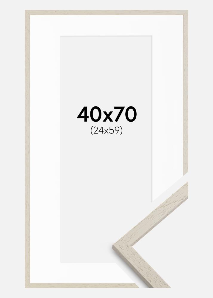 Рамката е 13 мм широка и има дълбочина от 11,5 мм, което предоставя дискретен, но все пак видим ръб на вашата стена декорация. Матово покритие на рамката допълва белия паспарту и създава хармонично визуално изживяване. Външните размери на рамката са 41,6x71,6 см, което я прави значителен, но все пак балансиран елемент за интериора.