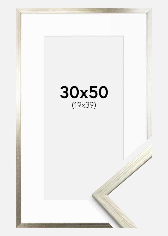 Изживейте елегантността и изтънчеността с нашата ексклузивна сребърна рамка с паспарту. Тази рамка е перфектна за акцентиране на вашето изображение с размер 20x40 см, с бяло паспарту, което осигурява професионално и чисто рамкиране. Блестящата сребриста повърхност на рамката добавя модерен нюанс към вашия дом, докато дискретната ширина от 13 мм не отвлича вниманието от произведението на изкуството.