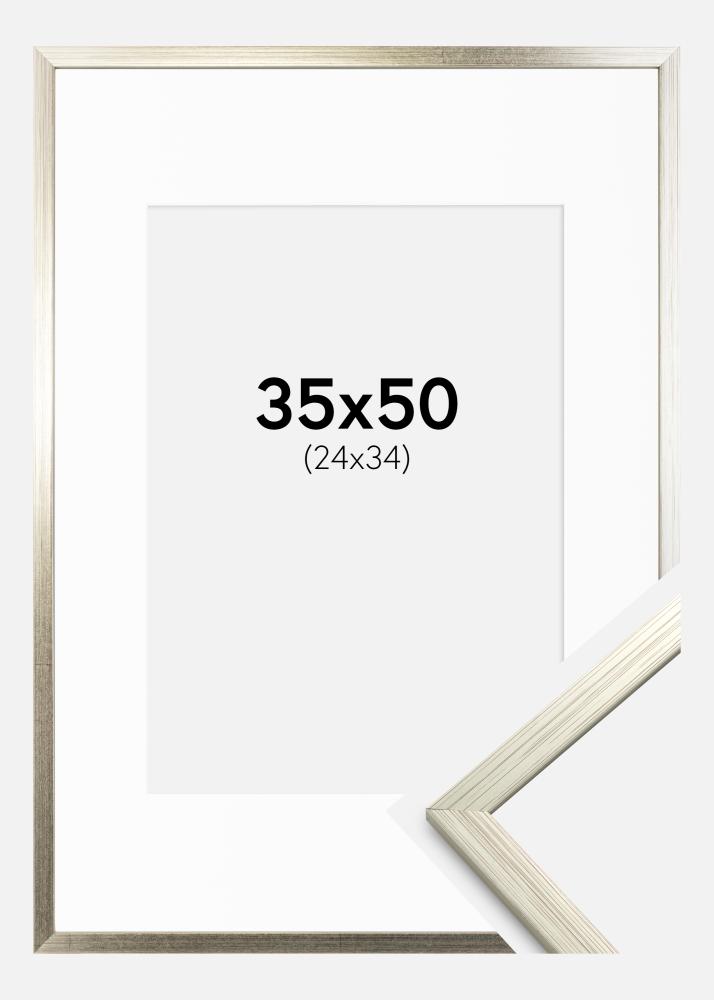 Дайте на вашите снимки вниманието, което заслужават, с елегантна сребриста рамка за снимки, комплектована с бял паспарту, което подчертава мотива. Паспартуто не е просто стилна подробност, то също така създава визуална почивка между изображението и рамката, което усилва изразителността на произведението на изкуството. Подходящо за размер на изображението 25x35 см, тази комбинация от рамка и паспарту предоставя на вашите фотографии и произведения на изкуството професионално рамкиране.
