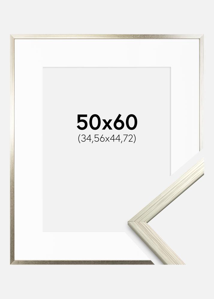 Рамката, която е с размери 51,6x61,6 см, е проектирана да пасва на изображения с размер 14x18 инча (35,56x45,72 см), което я прави идеален избор както за фотографии, така и за художествени отпечатъци. Тънката ширина от 13 мм придава изящество, без да превзема, а дълбочината на рамката от 11,5 мм създава интересна измерение и сянка. Блестящото сребърно покритие на рамката допълва бялото паспарту и заедно образуват хармонично цяло, което пасва на много различни стилове интериор.