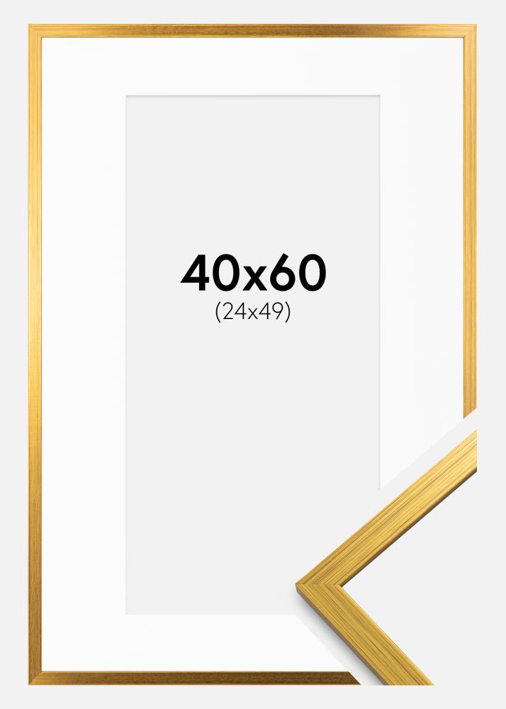 Изживейте докосване на елегантност и изтънченост с тази златна рамка, която ще превърне вашата снимка или произведение на изкуството в истински привличащ внимание обект. С размери на рамката 41,6x61,6 см и размер на изображението 25x50 см с паспарту, тази рамка е перфектна за подчертаване на вашите любими снимки с бял кант, който придава професионално впечатление.