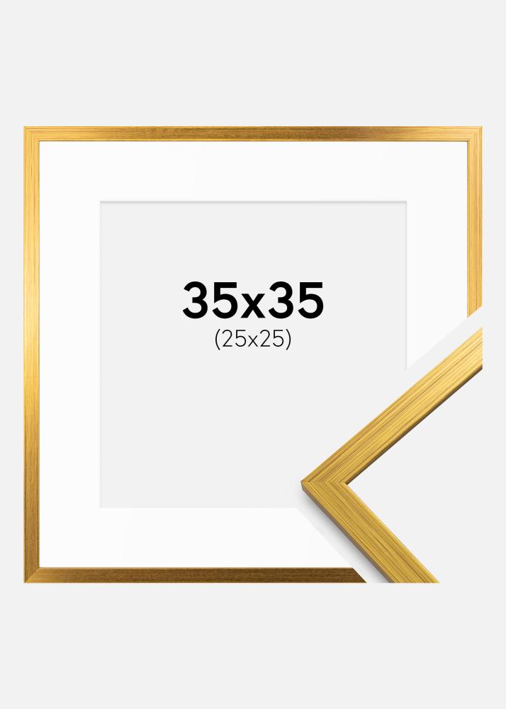 Превърнете вашите снимки в произведения на изкуството с нашата елегантна златна рамка, допълнена с бял паспарту. Тази квадратна рамка има външни размери 37x37 см и е идеална за акцентиране на снимки с размер 26x26 см. С ширина от 13 мм и дълбочина от 11,5 мм, блестящият златен завършек придава луксозно усещане, което подхожда на всички стилове интериор.
