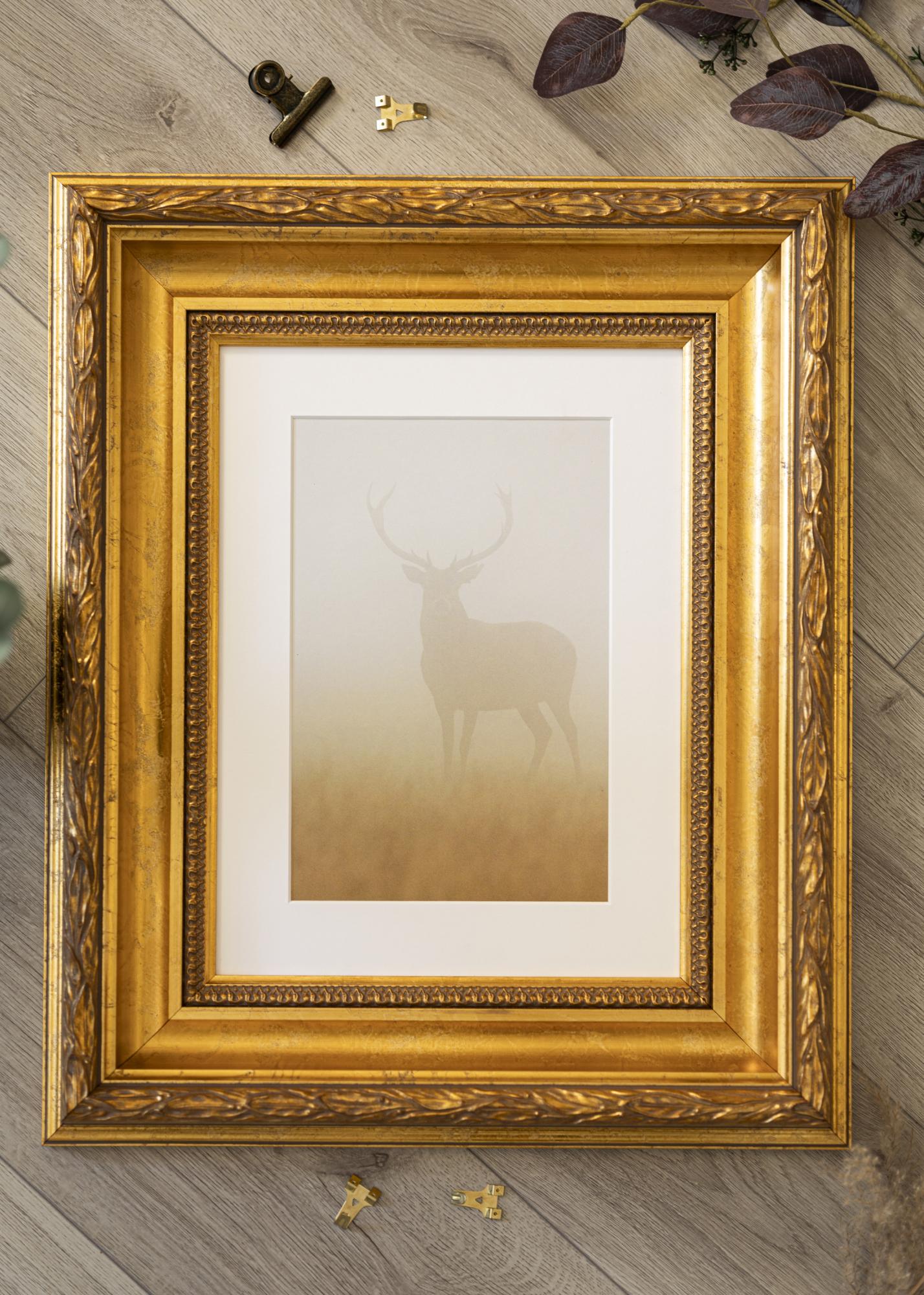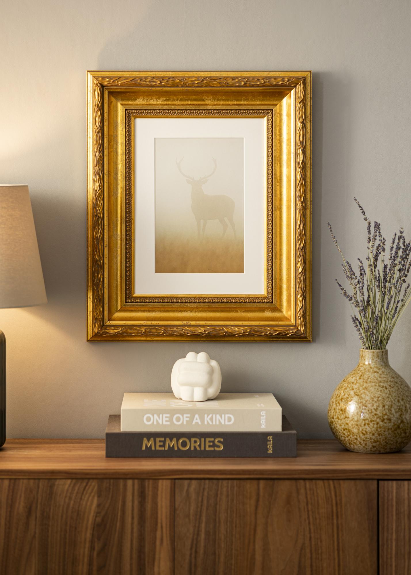 Рамката Egypt Ornament Gold е ексклузивна фоторамка, която придава на вашите снимки усещане за елегантност и вечност. Със своя дълбок, топъл нюанс в антично златно и декоративни детайли, тя става красиво допълнение към всяка стая. Тази рамка за картини е перфектна за вас, ако искате да придадете на вашите произведения на изкуството или фотографии допълнителна доза стил и клас.