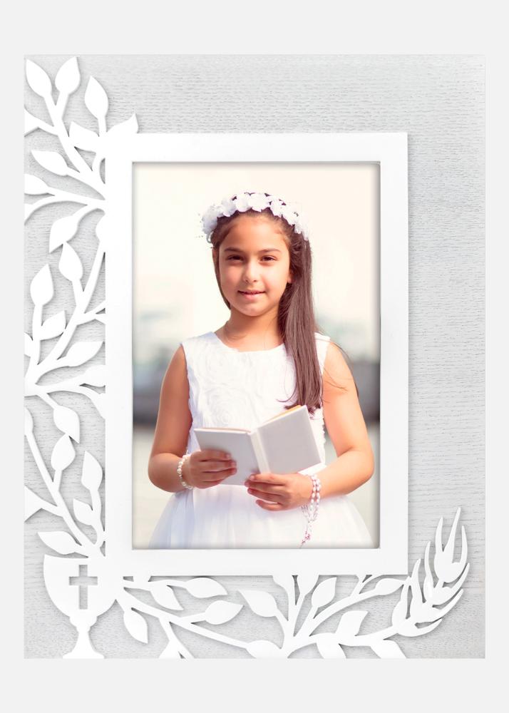 Дайте на вашите снимки от конфирмацията значима рамка с тази уникална фоторамка с размери 10x15 см. Украсена с дискретен малък кръст, тя усилва религиозната тема и се превръща в красив символ за важно събитие в живота. Тази рамка за картини не е само стилен детайл в дома, но също така е начин да запазите спомени от специален ден.
