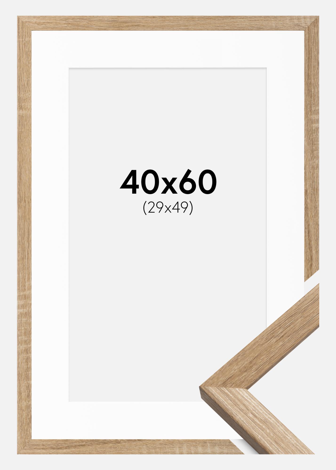 Рамката е 20 мм широка и дълбока, което осигурява здрава и стилна рамка. Матово покритие на рамката допълва бялото паспарту и придава изискана визия, която пасва във всяка стая. Рамката е проектирана да побира изображение с размери 30x50 см, идеално за подчертаване както на портрети, така и на пейзажни фотографии.