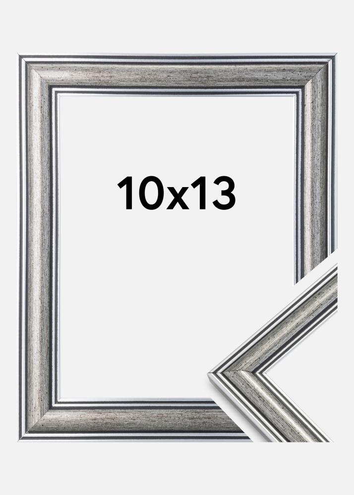 Стартирайте избора на рамка »Фриг е сребърна рамка с черни линии и черни пръски. Подходяща е, когато търсите широка традиционна сребърна рамка, която да подхожда на много видове картини и среди.