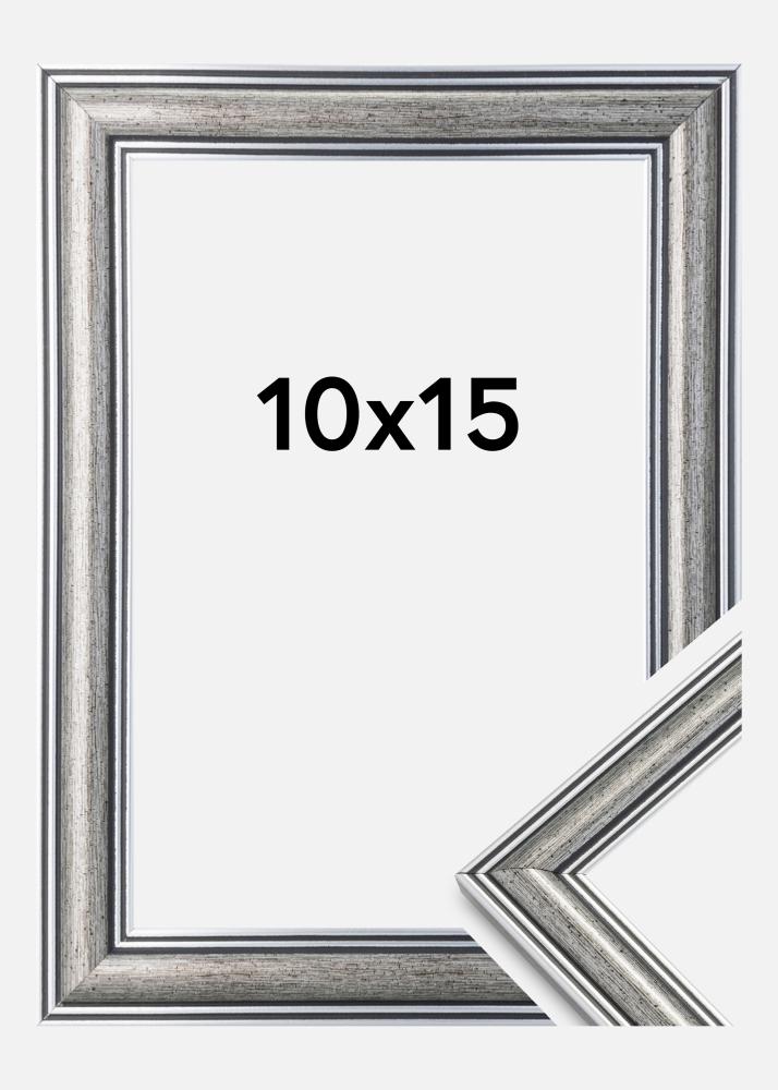Frigg е сребърна рамка с черни линии и черно-изпъстрени елементи. Подходяща е, когато търсите широка традиционна сребърна рамка, която да подхожда на много видове снимки и среди.