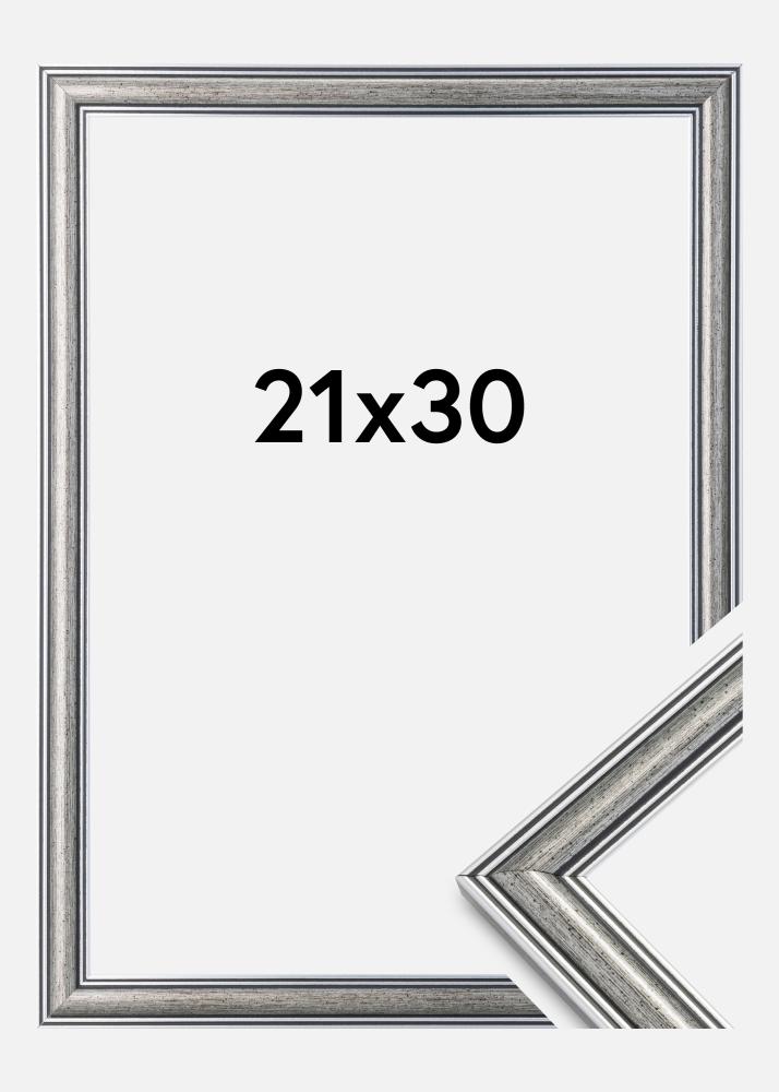 Стартирайте избора на рамка »Frigg е сребърна рамка с черни линии и черни пръски. Подходяща е, когато търсите широка традиционна сребърна рамка, която пасва на много видове картини и среди.