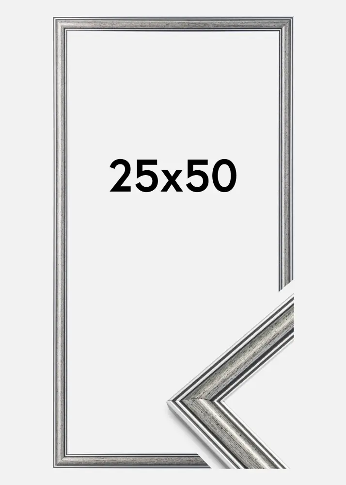 Фриг е сребърна рамка с черни линии и черни пръски. Подходяща е, когато търсите широка традиционна сребърна рамка, която пасва на много видове снимки и обстановки.
