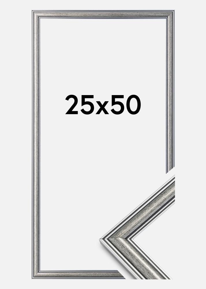 Стартирайте избора на рамка »Фриг е сребърна рамка с черни линии и черни пръски. Подходяща е, когато търсите широка традиционна сребърна рамка, която пасва на много видове снимки и обстановки.