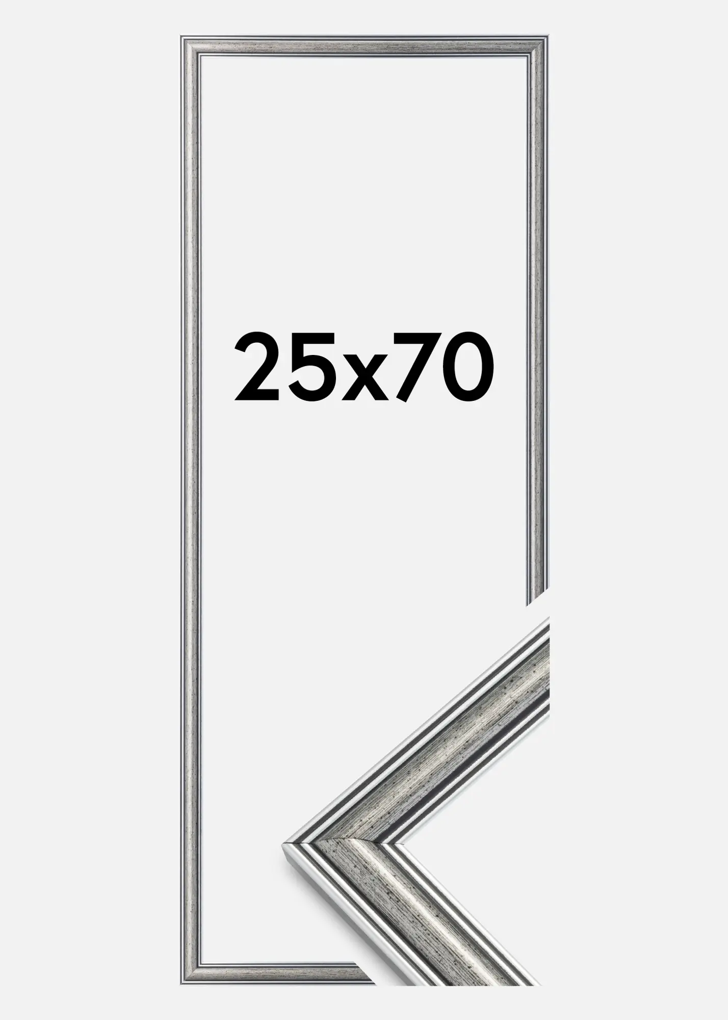 Frigg е сребърна рамка с черни линии и черни пръски. Отлично подхожда, когато търсите широка традиционна сребърна рамка, която пасва на много видове изображения и среди.