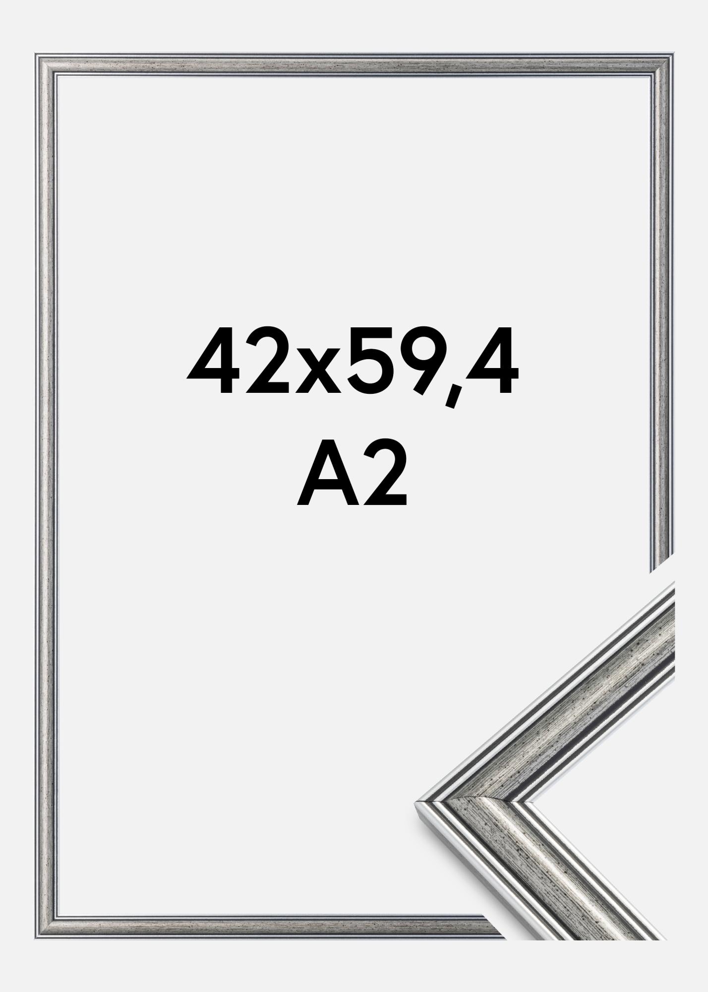 Стартирайте избора на рамка »Фриг е сребърна рамка с черни линии и черно-петнисти елементи. Подходяща е, когато търсите широка традиционна сребърна рамка която да пасва на много видове снимки и среди.