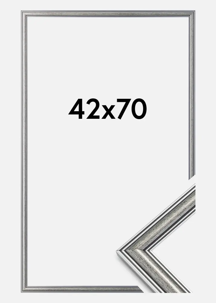 Фриг е сребърна рамка с черни линии и черно-спръскани елементи. Подходяща е, когато търсите широка традиционна сребърна рамка, която пасва на много видове изображения и среди.