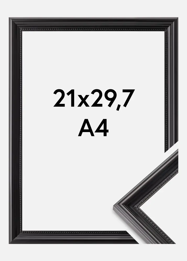 Открийте елегантността и непреходния дизайн с нашата черна фоторамка с размер 21x29,7 см (A4). Тази рамка за картини е идеална за подчертаване на любимите ви снимки или произведения на изкуството със своя профилиран ретро стил. Ширината на профила от 20 мм се допълва от дълбочина от 17 мм, което придава отличителен и привлекателен ръб на вашата рамкирана картина.