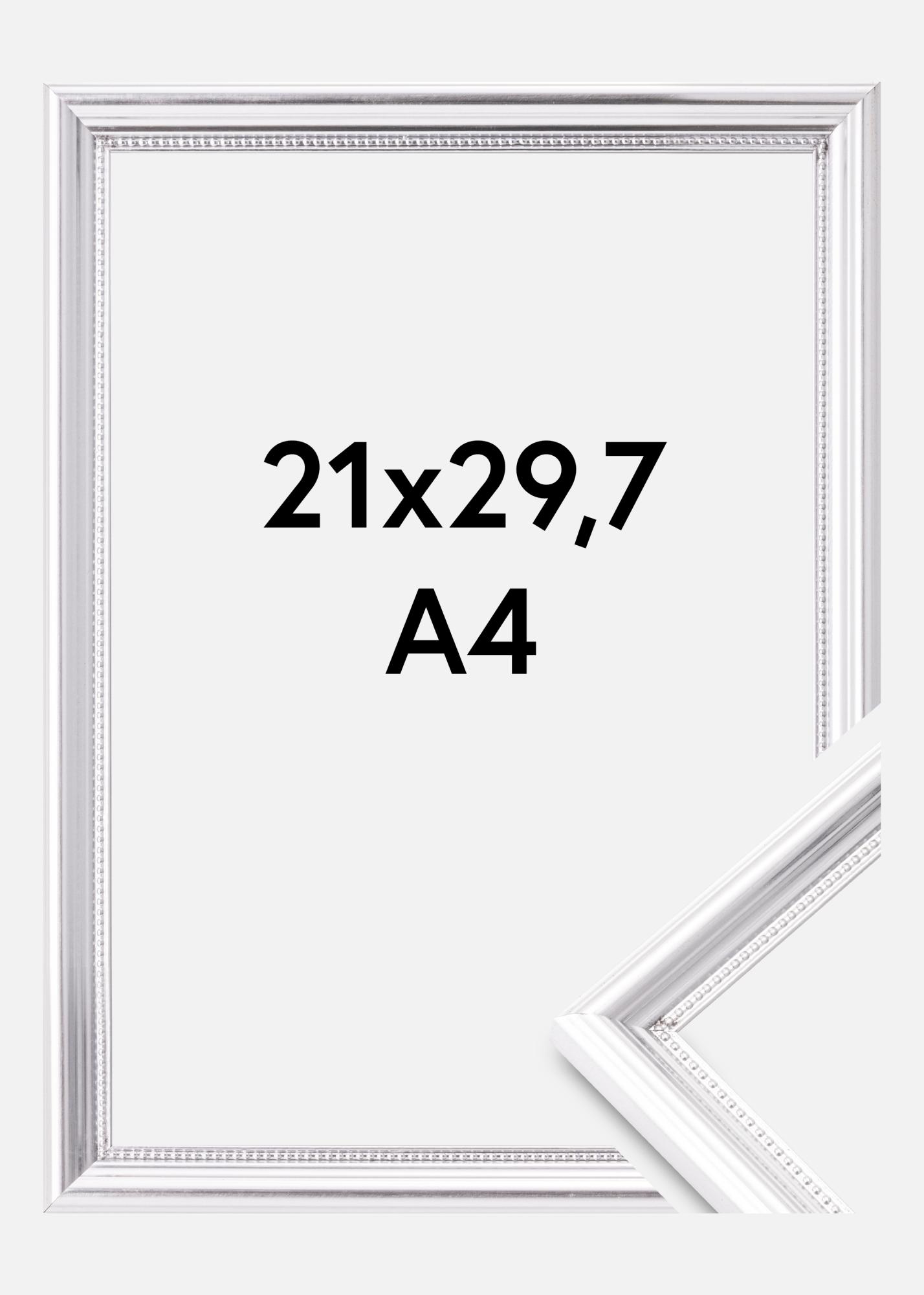 Добавете елегантност на вашите стени с тази сребриста фоторамка с размери 21x29,7 см (A4). Със своя профилиран рамков списък от 20 мм и дълбочина от 17 мм, тази рамка за картини комбинира класически дизайн с модерни детайли. Блестящата повърхност отразява светлината по фин начин и придава луксозно усещане на избраното ви произведение на изкуството или снимка.