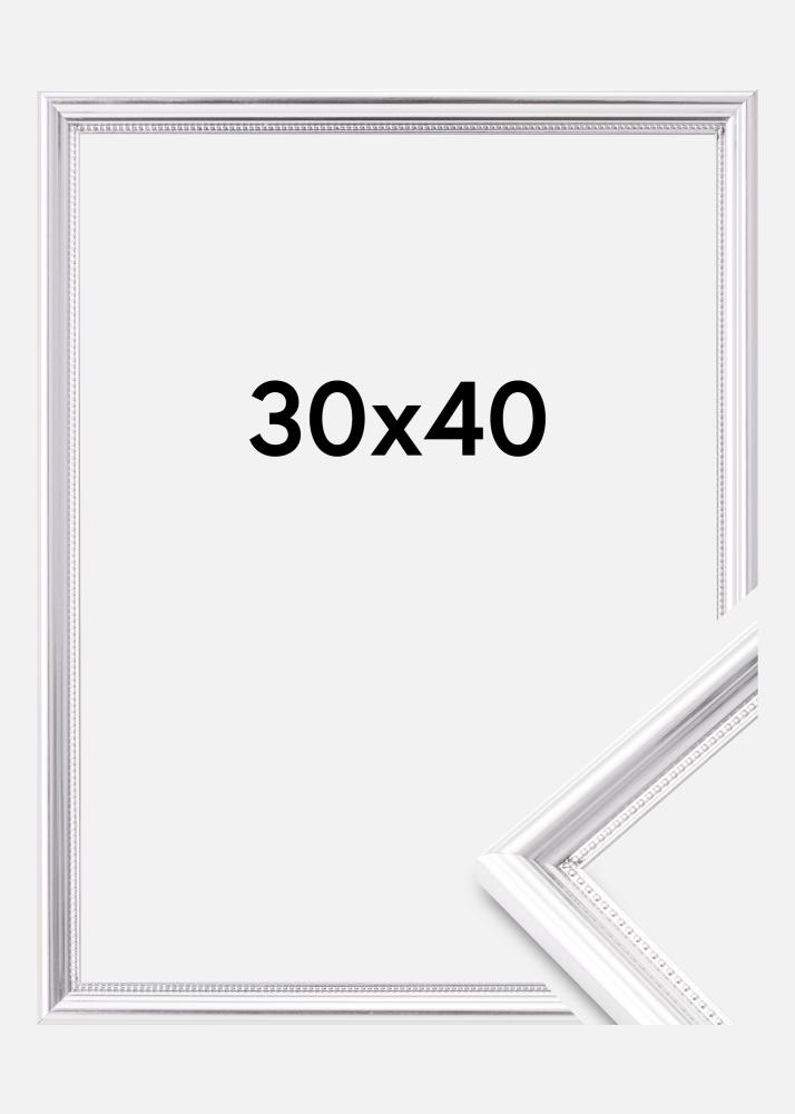 Добавете елегантност на вашите стени с тази сребриста фоторамка с размери 30x40 см. С профилираната си рамка от 20 мм и дълбочина 17 мм, тази рамка съчетава класически дизайн с модерни детайли. Блестящата повърхност подчертава ретро стила на рамката и я прави забележителен акцент във всяка стая.