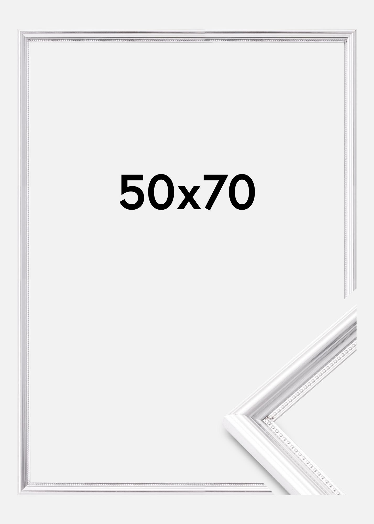 Добавете елегантност на стените си с тази сребриста фоторамка с размер 50x70 см. Със своя профилиран борд с ширина 20 мм и дълбочина 17 мм, тази рамка комбинира класически дизайн с модерни детайли. Блестящата повърхност отразява светлината красиво и придава луксозно усещане на вашия дом.