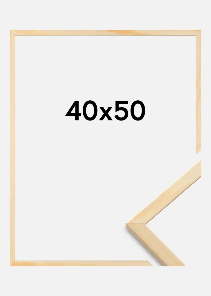 Красива дървена рамка с права профил в светъл дървесен цвят, която е необработена, идеална, когато искате да боядисате свои собствени рамки или просто търсите светла дървена рамка.