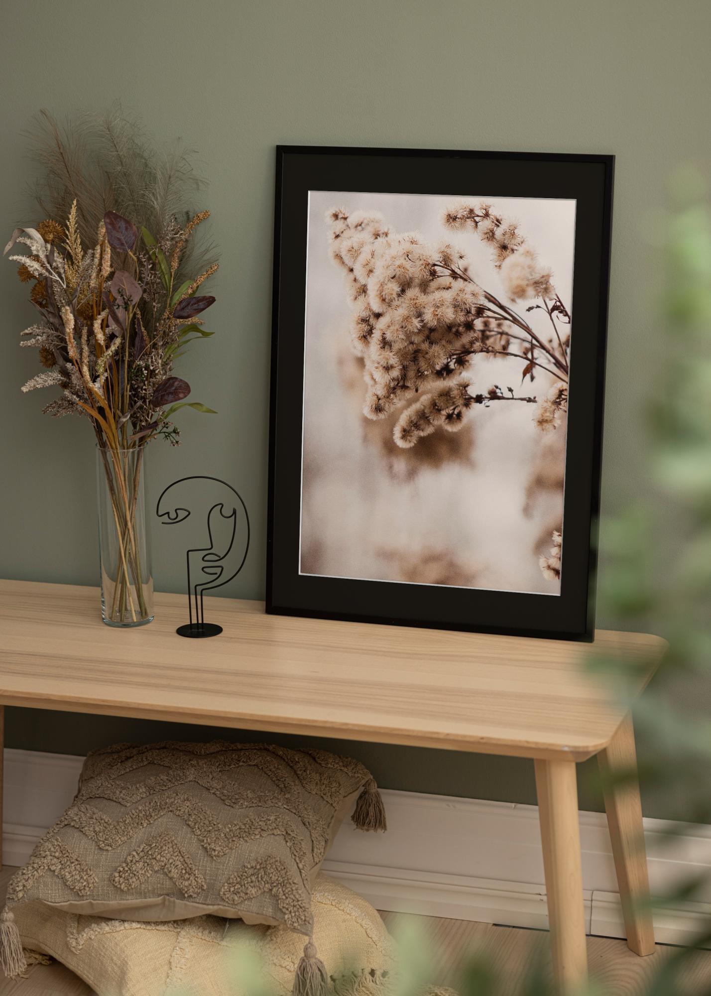 Съответстващото черно паспарту усилва контраста и подчертава вашата картина по изискан начин. Рамката е оборудвана с практични метални закачалки за лесно окачване както в хоризонтален, така и във вертикален формат.