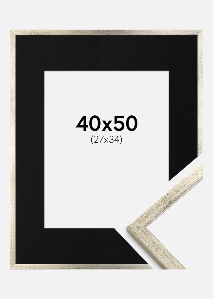 Изживейте изкуството на подчертаване с нашата елегантна сребърна рамка с черна паспарту. Перфектната комбинация за да придадете на вашата фотография или произведение на изкуството онова малко допълнително. С размер на изображението 28x35 см, вашето произведение ще привлича вниманието и ще стои в центъра, обградено от дълбокия черен тон, който предлага паспартуто.