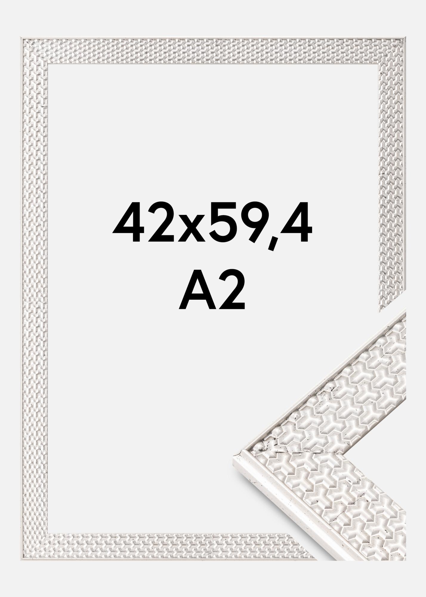 За да защитите своето произведение на изкуството, рамката е снабдена с кристално чисто и неразбиваемо акрилно стъкло. Акрилното стъкло има защитно фолио от двете страни, за да гарантира, че стигне до вас в перфектно състояние. Не забравяйте да премахнете фолиото преди употреба, за да разкриете пълния потенциал на рамката. С размери 42 x 59,4 см (A2), тази сребърна рамка в ретро стил ще бъде величествено допълнение към всяка стая.