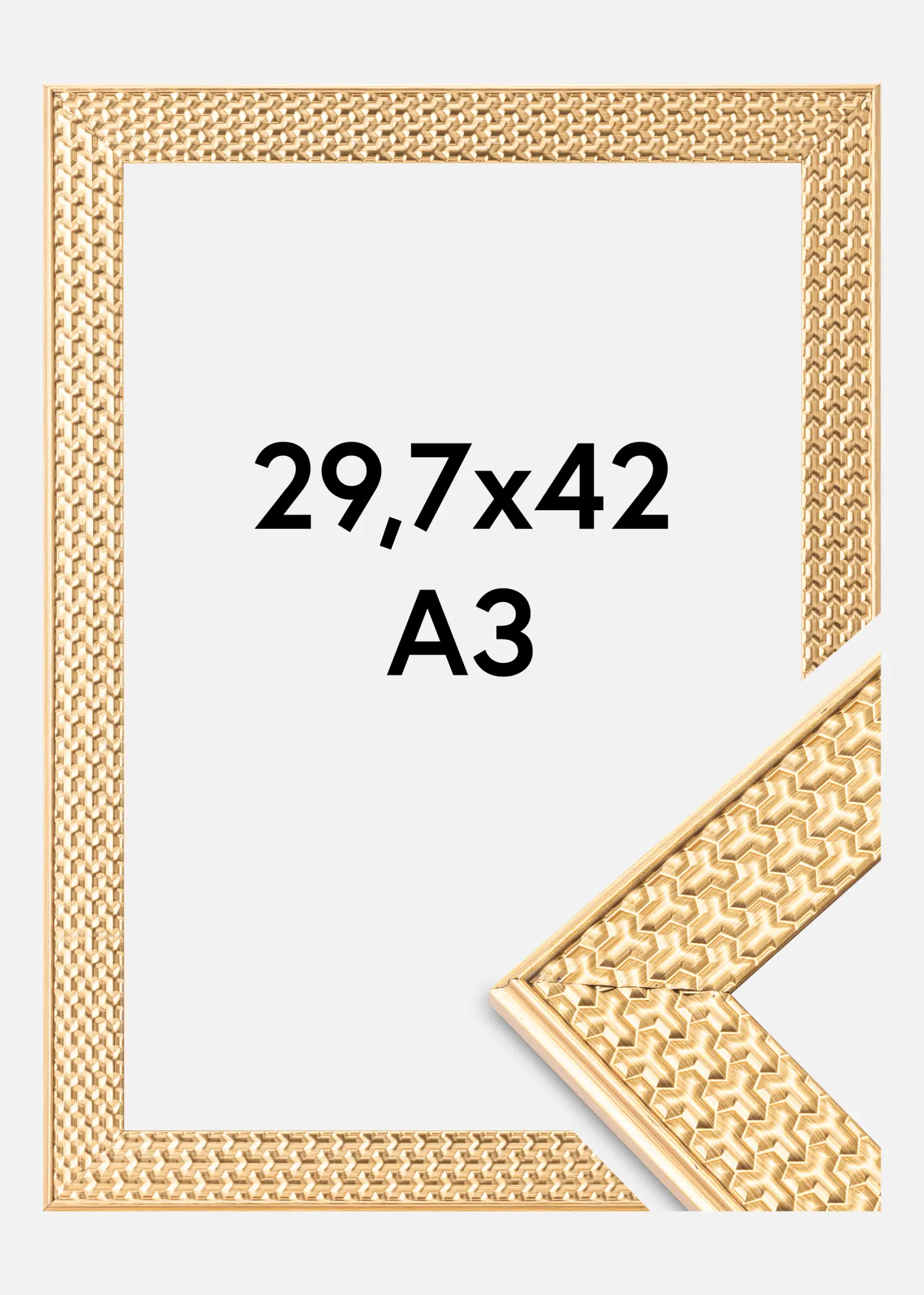 Добавете елегантност към вашите снимки с нашата 29,7x42 см (A3) златна рамка в ретро стил. Тази фоторамка не е просто защитна обвивка за вашите фотографии, но и стилен интериорен елемент, който добавя луксозно усещане към вашия дом. Със своята 35 мм широка рамка се подчертава мотивът и предоставя впечатляващ дълбочинен ефект.