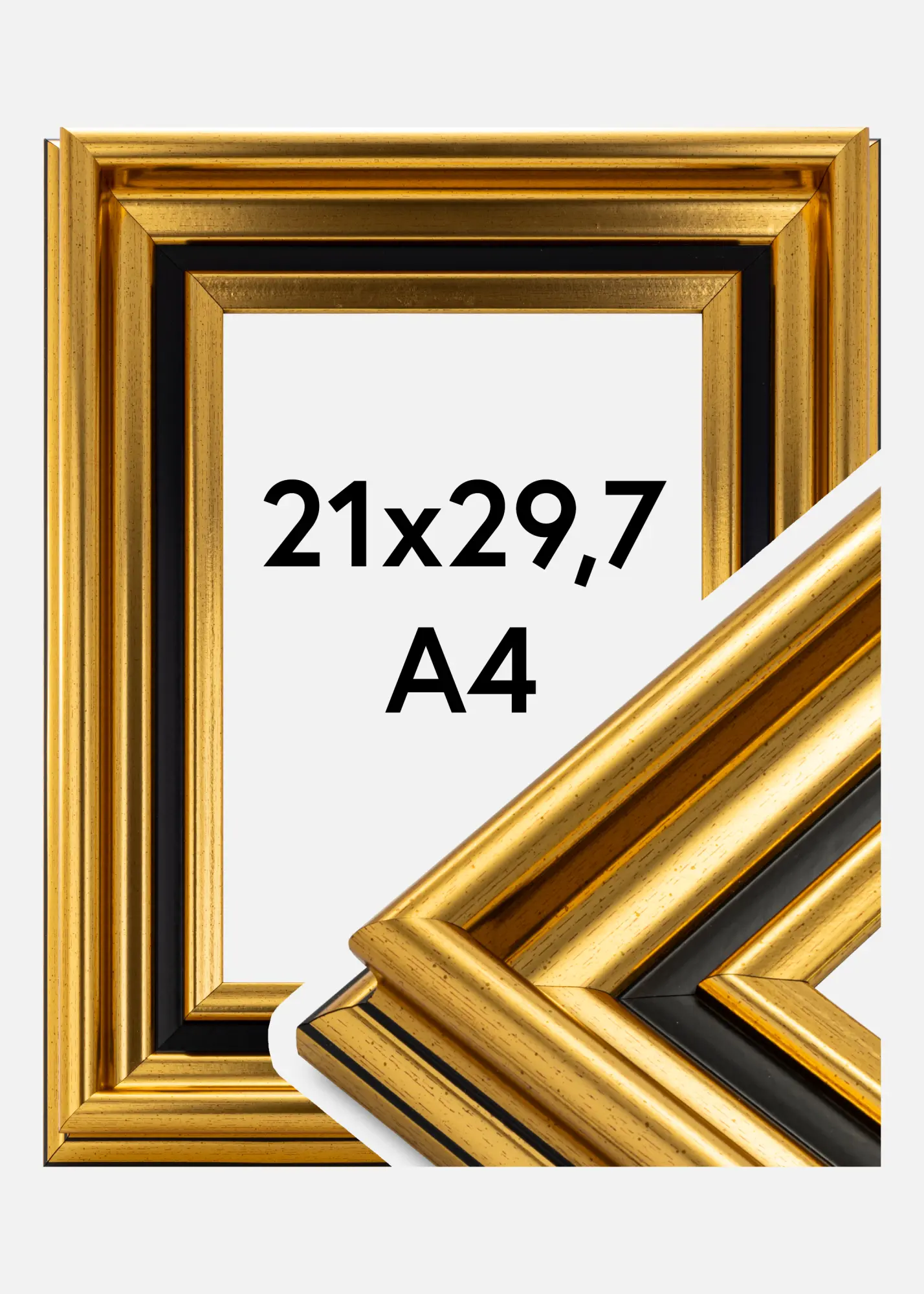 Gysinge е красива златна рамка с изключително широка профил, която винаги се забелязва. Около мотива има и черен ръб, който допълнително усилва красивия профил на рамката. Перфектна е, когато търсите нещо наистина специално за вашите най-ценни снимки. Gysinge Gold е един от нашите фаворити за семейни снимки, когато търсите наистина ексклузивна рамка.