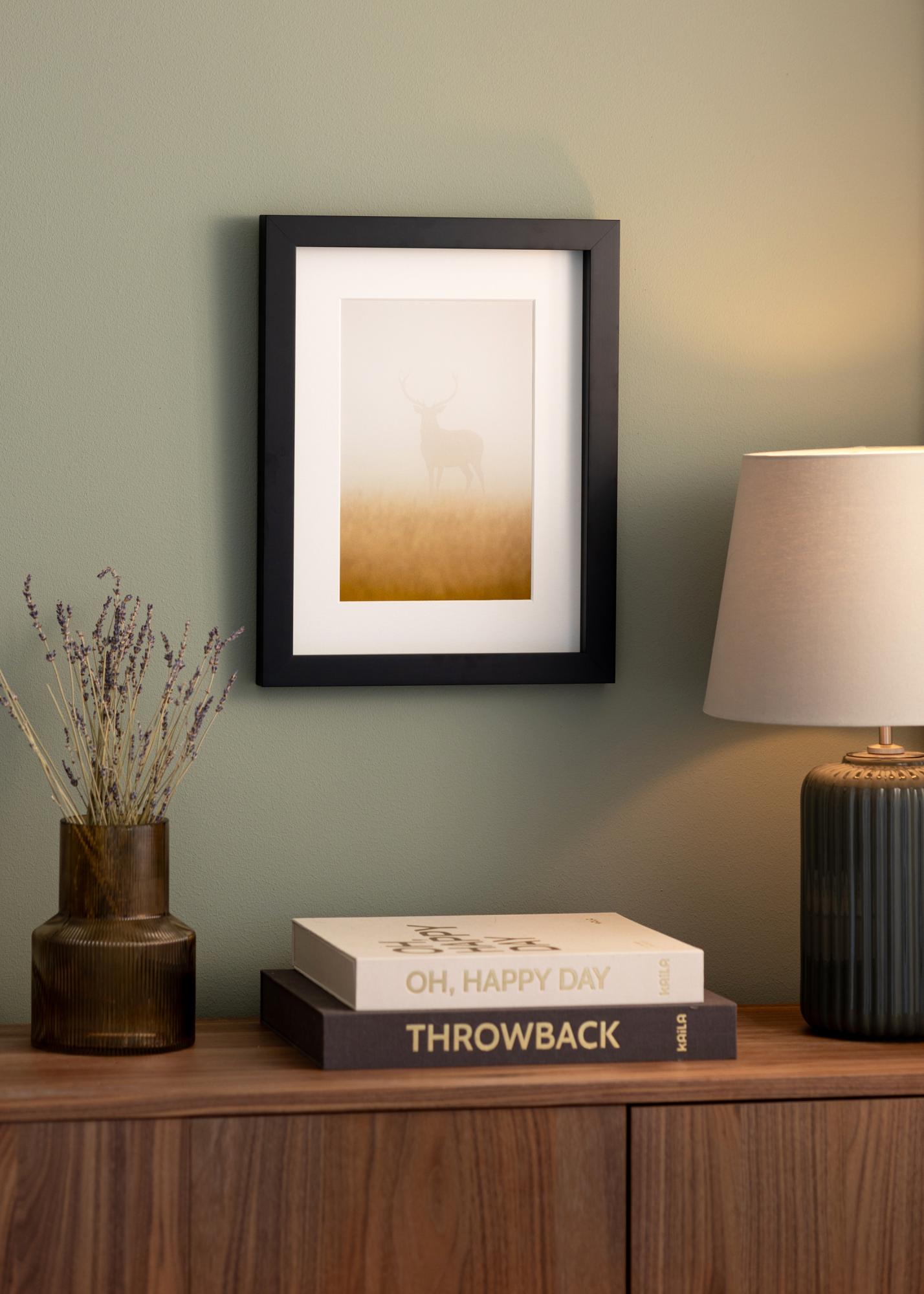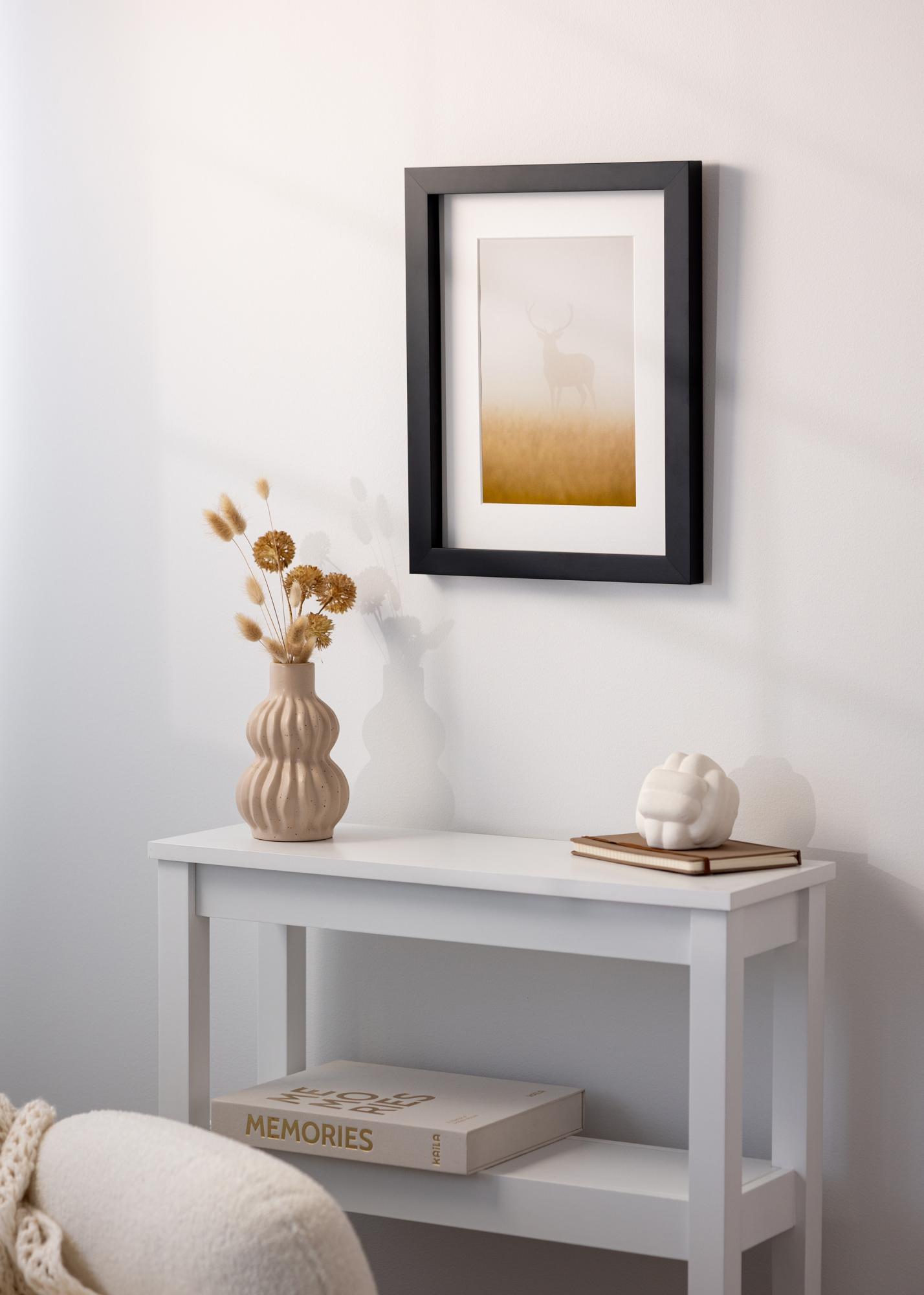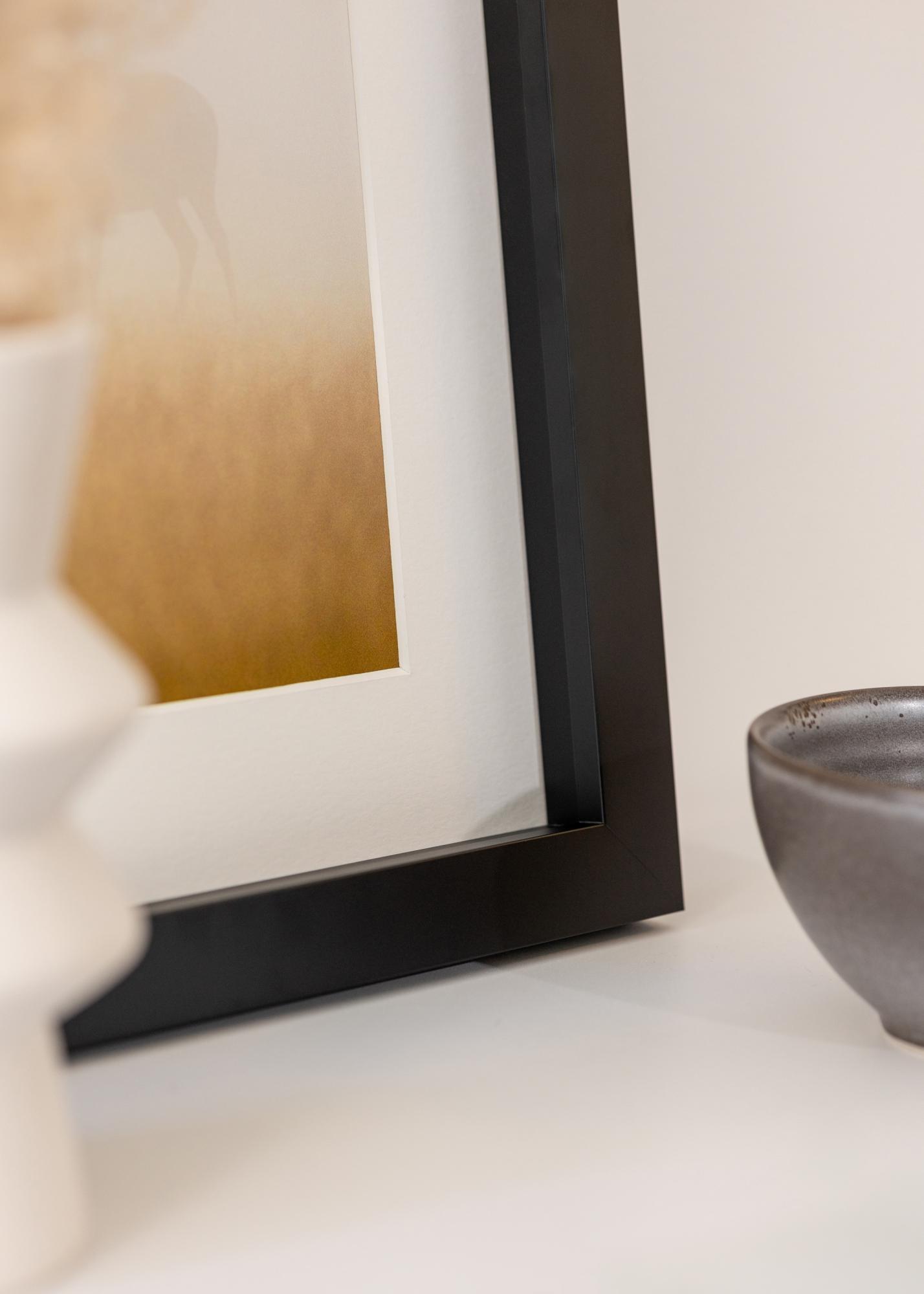 Тази рамка за картини има 30 мм широка рамкова лайсна и дълбочина от 32 мм, което създава впечатляваща дълбочина между изображението и стъклото благодарение на дистанционната лайсна. Това придава на мотива допълнително измерение и наистина го поставя на фокус. Рамката е изработена от бор, което осигурява стабилна и устойчива конструкция, като същевременно задържа леко тегло.