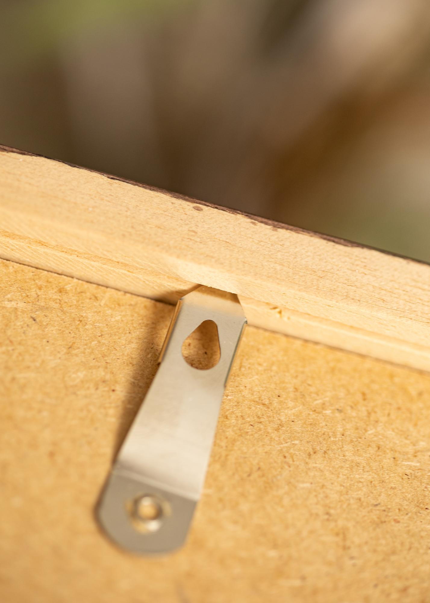 Тази рамка не е само стилна, но и практична. Оборудвана е с метални държачи на гърба, което позволява да бъде окачена както хоризонтално, така и вертикално, за да съответства на вашето пространство и стил. Изработена от дърво айос, тя комбинира издържливост с изчистен външен вид.