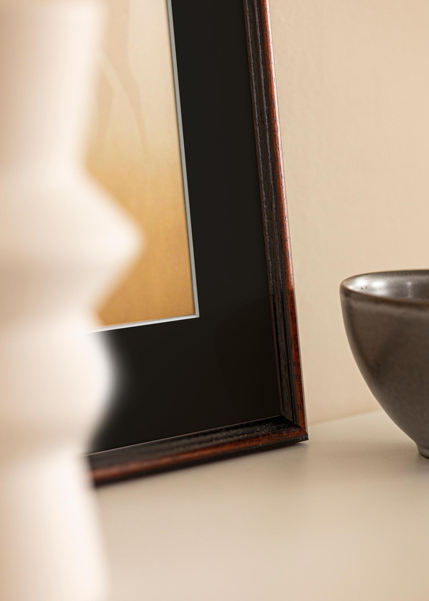Рамката, в топъл дървесен нюанс, има матова повърхност и дискретна ширина от 15 мм, която добавя изтънченост, без да доминира. Нейната дълбочина от 14 мм придава отличителен усет за качество и здравина.