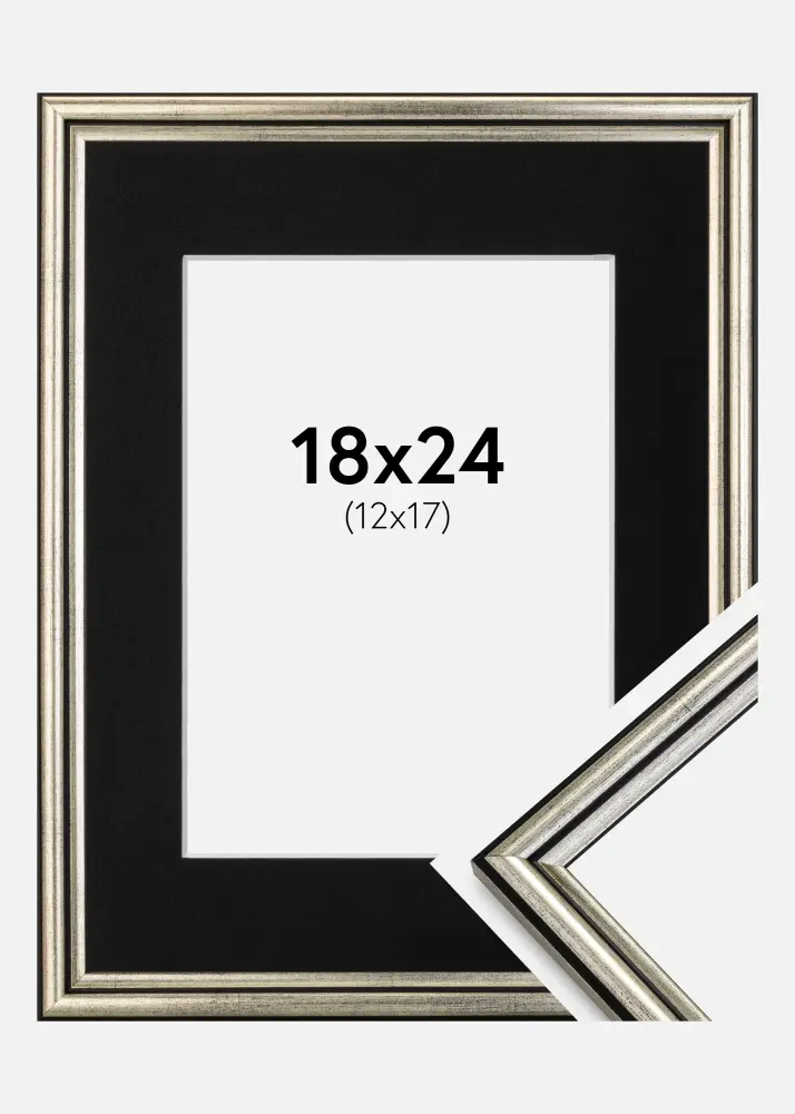 Рамка Horndal Сребро 18x24 cm - Паспарту Черно 13x18 cm
