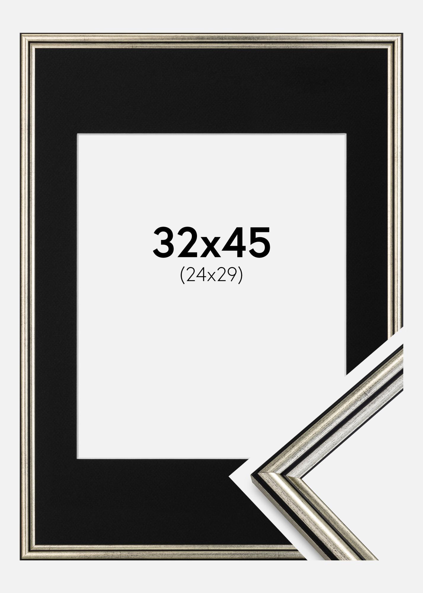Изживейте елегантността и изтънчеността с нашата ексклузивна сребърна рамка, перфектна за подчертаване на вашето произведение на изкуството или снимка с размер 25x30 см. Ширината на рамката от 15 мм и дълбочината от 14 мм с матово покритие осигуряват деликатна рамка, която позволява вашият мотив да бъде в центъра на вниманието. Черният паспарту добавя допълнителна дълбочина и професионален щрих, който улавя погледа на зрителя.