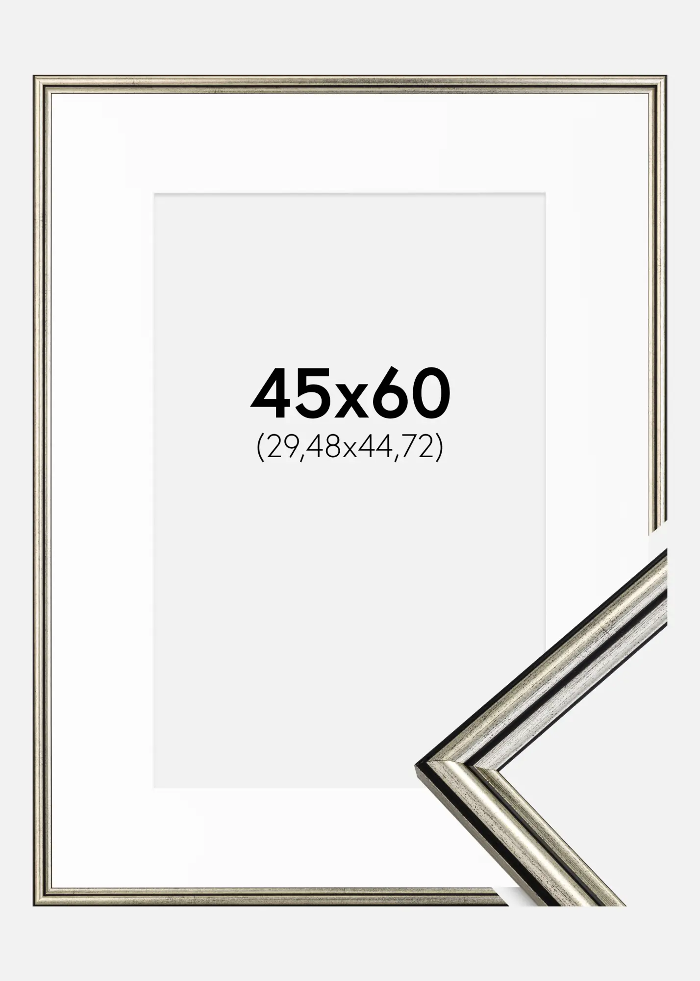 Рамка Horndal Сребро 45x60 cm - Паспарту бяло 12x18 inches