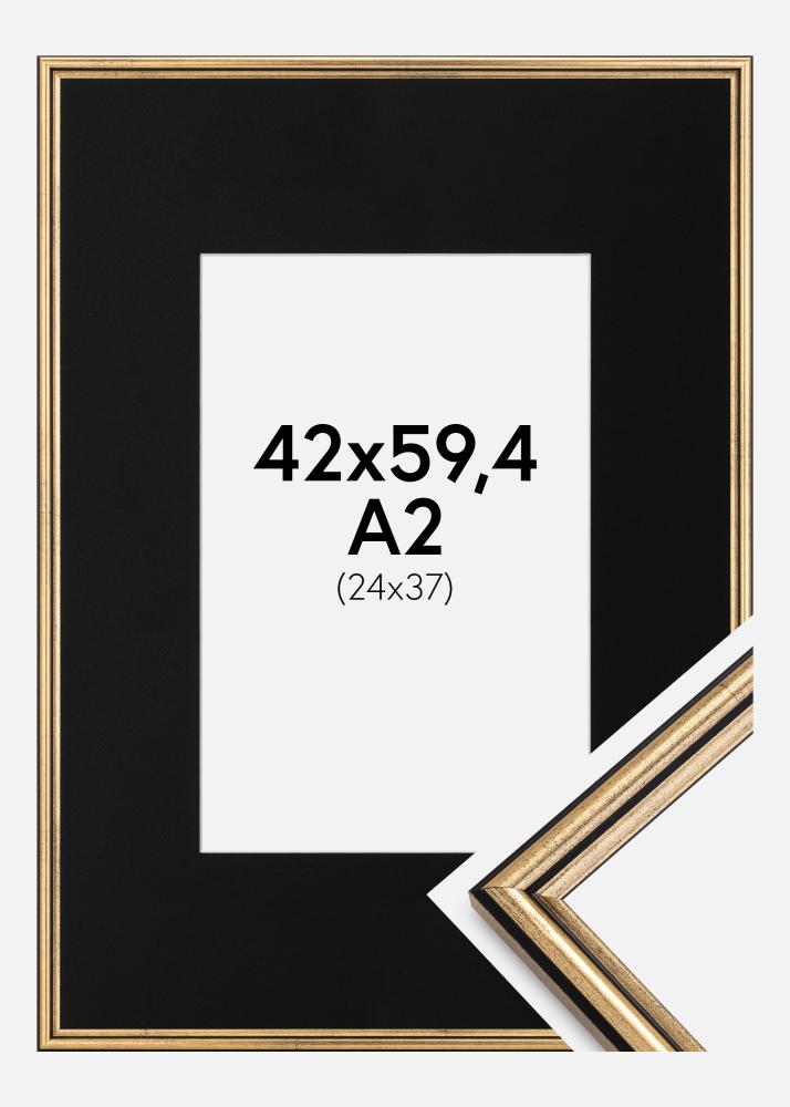 Изживейте изкуството на подчертаване с нашата елегантна златна рамка, перфектна за обрамчване на вашата картина с размери 25x38 см. Обрамчена с черно паспарту, тя създава визуална пауза, която насочва окото към вашето произведение на изкуството и му придава професионален вид. Дълбочината и цветът на паспартуто акцентират върху картината и я защитават от директен контакт със стъклото.