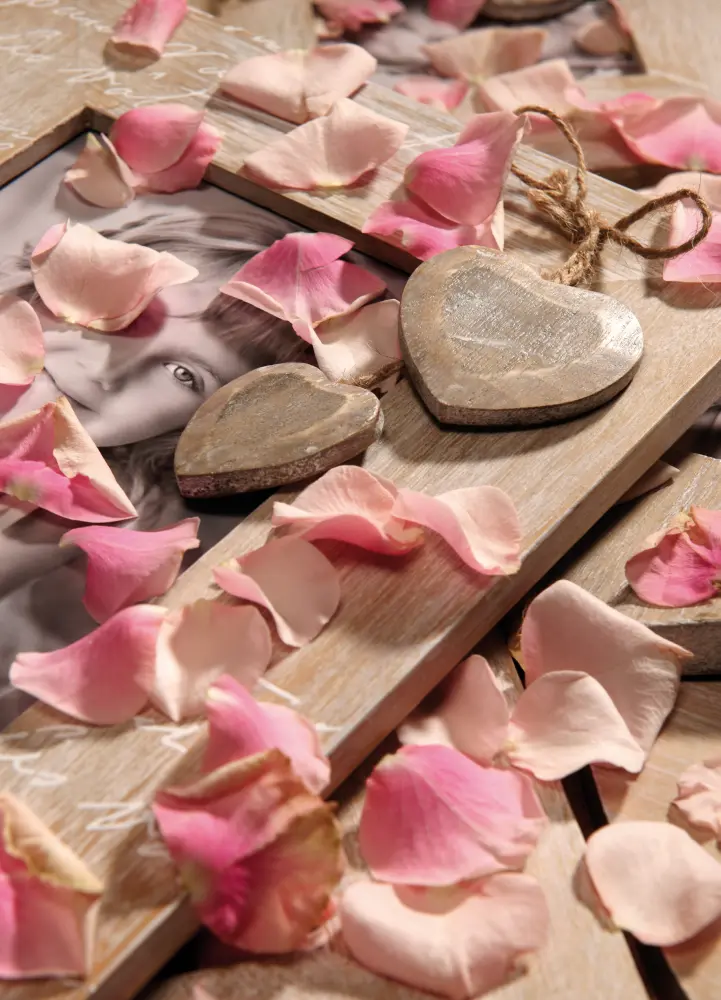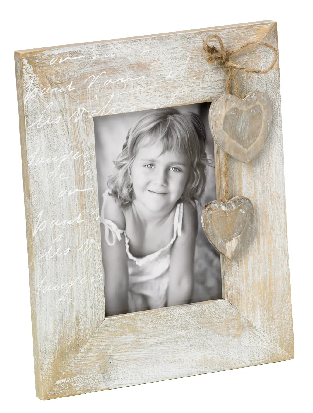 Красива винтидж рамка с износен широк дървен профил, красиво декорирана с конопено въже и две сладки сърца. Рамката има място за 1 снимка с размери 10x15 см и пасва еднакво добре на рафта за книги или в спалнята.