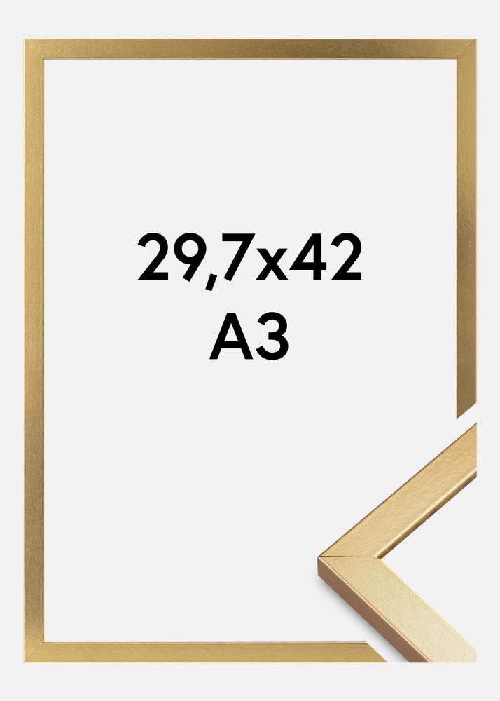 Размерът 29,7 x 42 см (A3) е перфектен за стандартен размер на плакати и сертификати, което улеснява намирането на подходящо съдържание за вашата нова златна рамка. Без значение дали е за дома или офиса, тази фоторамка ще подчертае и съхрани вашите спомени и постижения със стил.