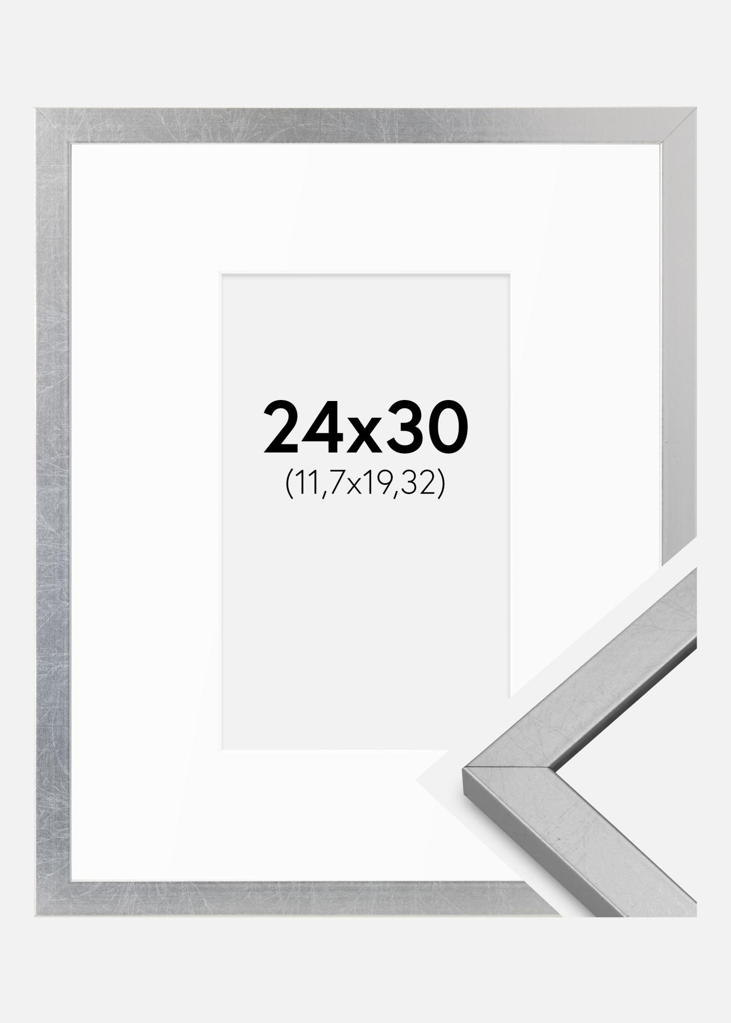 Рамка Minerva Сребро 24x30 cm - Паспарту Бяло 5x8 inches