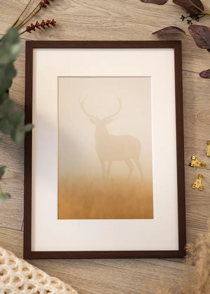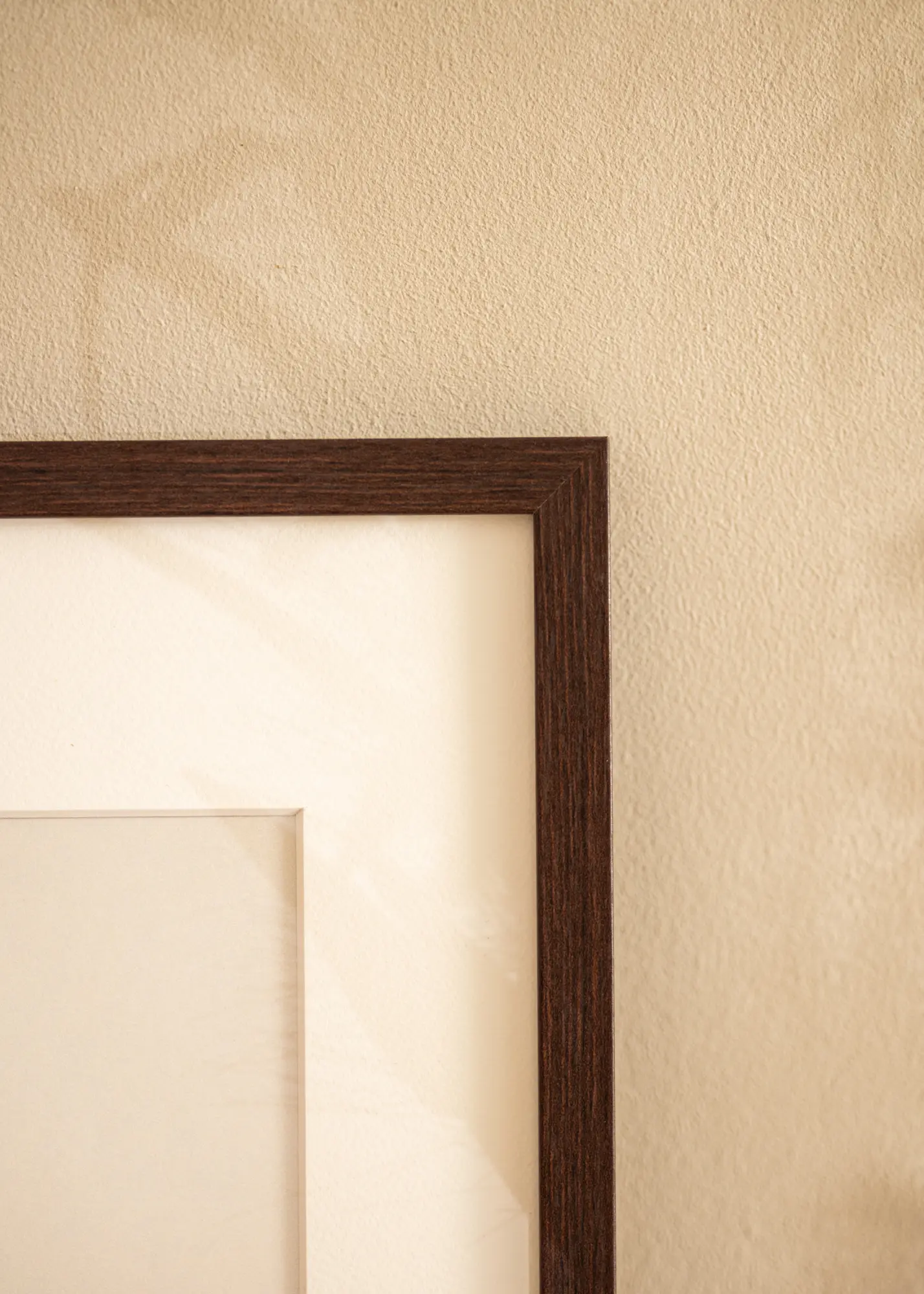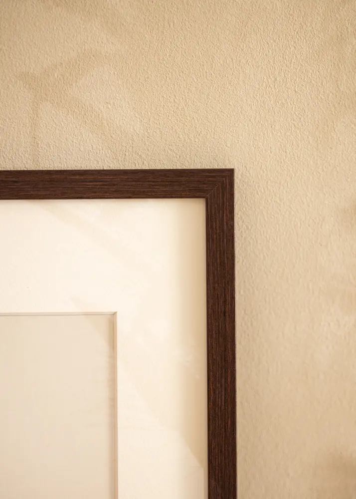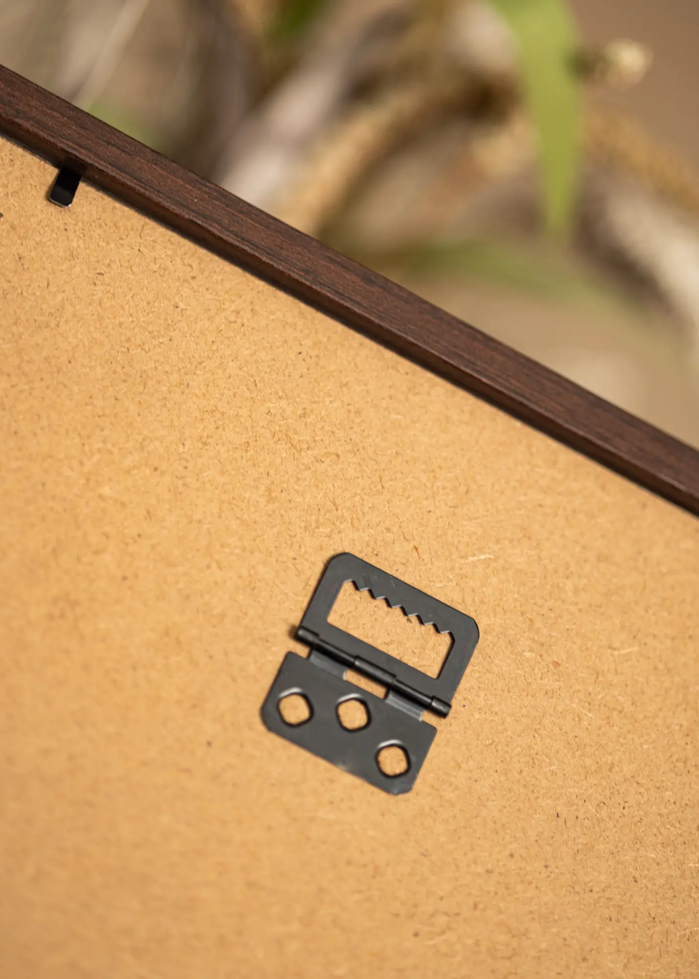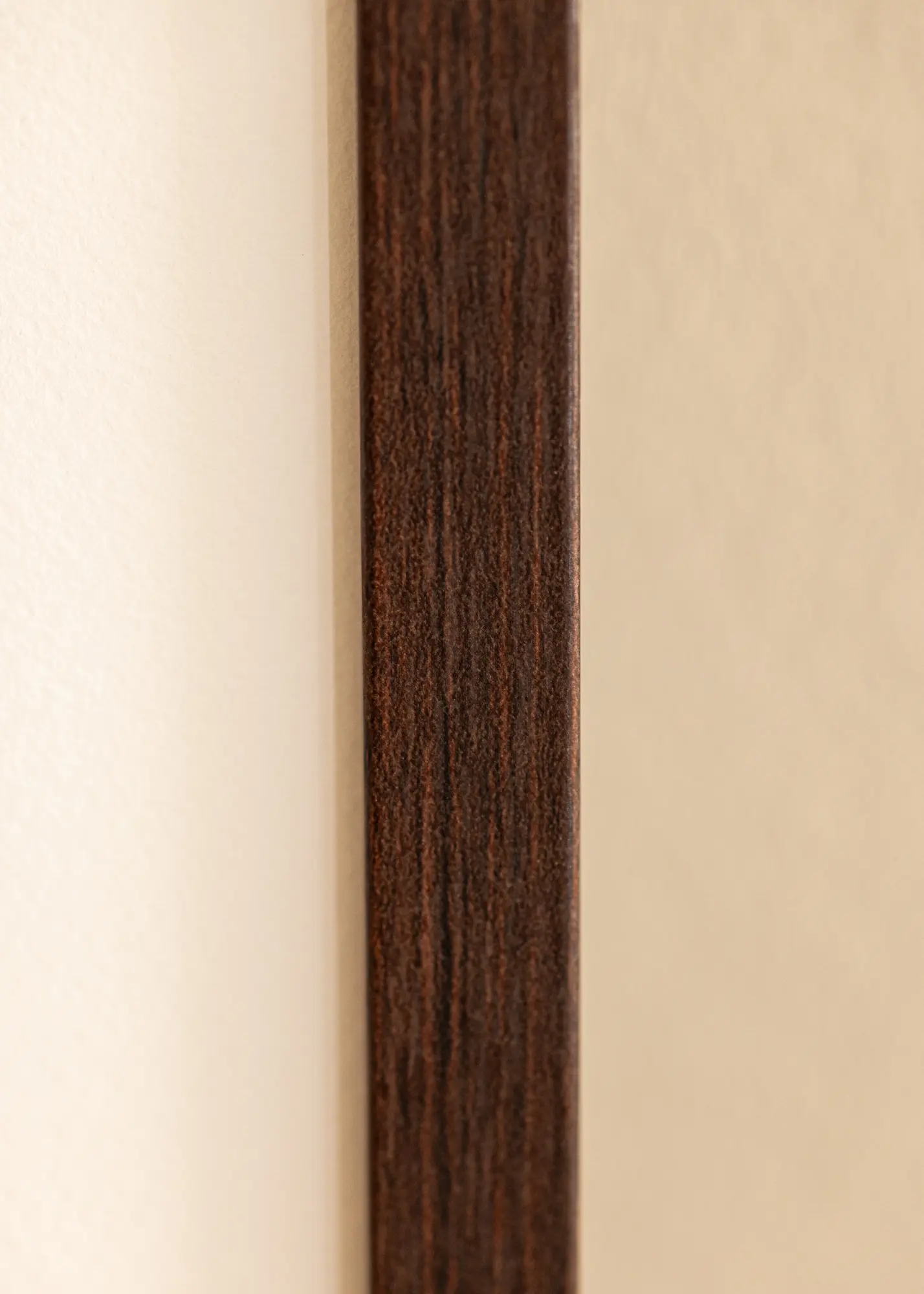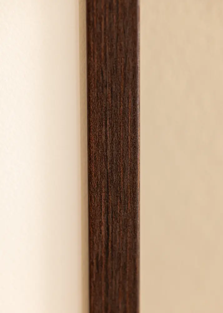 Рамката има 14 мм широка рамка, която добавя дискретен, но отчетлив кант на вашето изображение. Освен това дълбочината на рамката е 15 мм, което предоставя фин профил, когато е окачена на стената. Ореховият мотив на повърхността придава автентично усещане за дърво, което прави всяка рамка уникална.