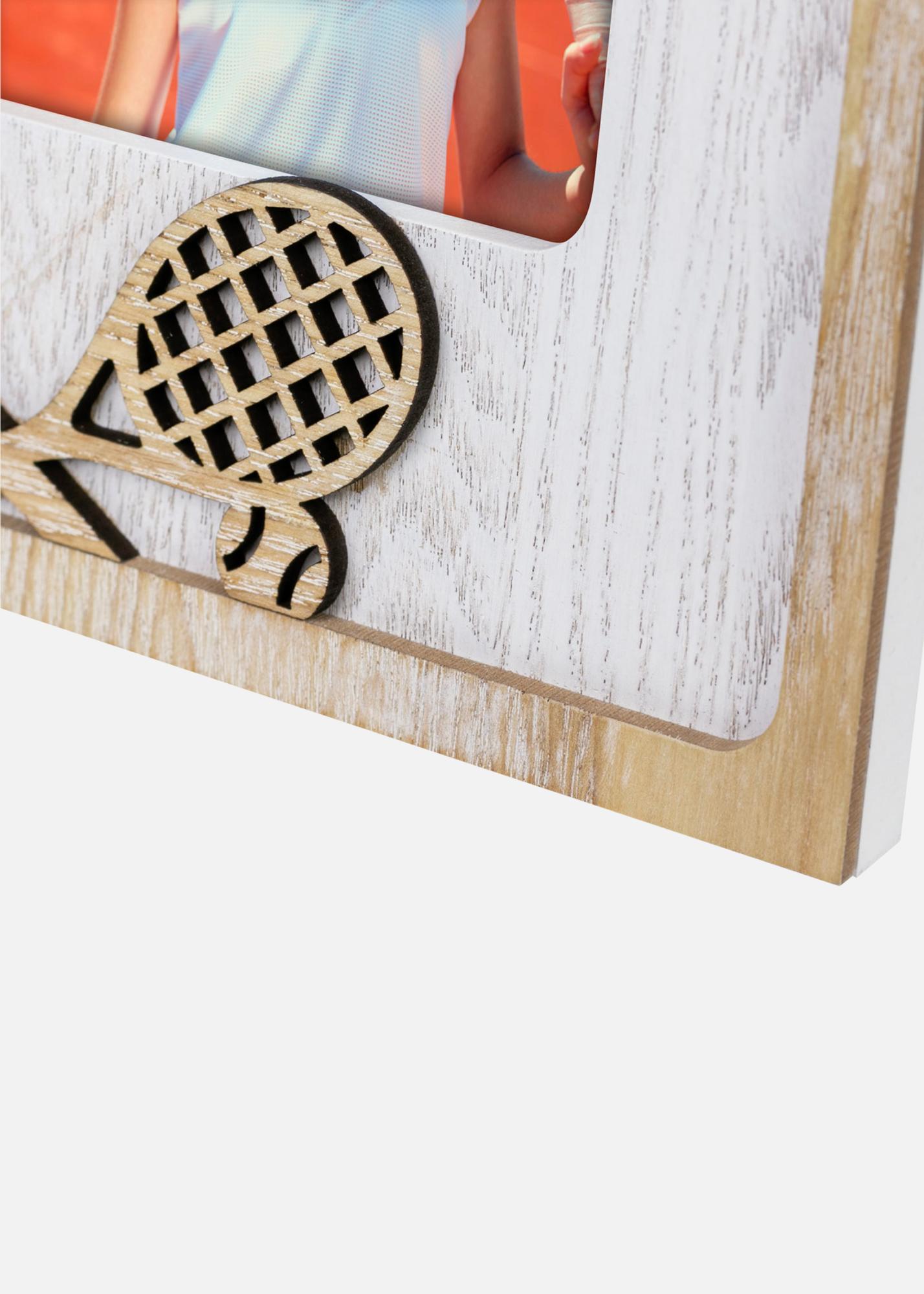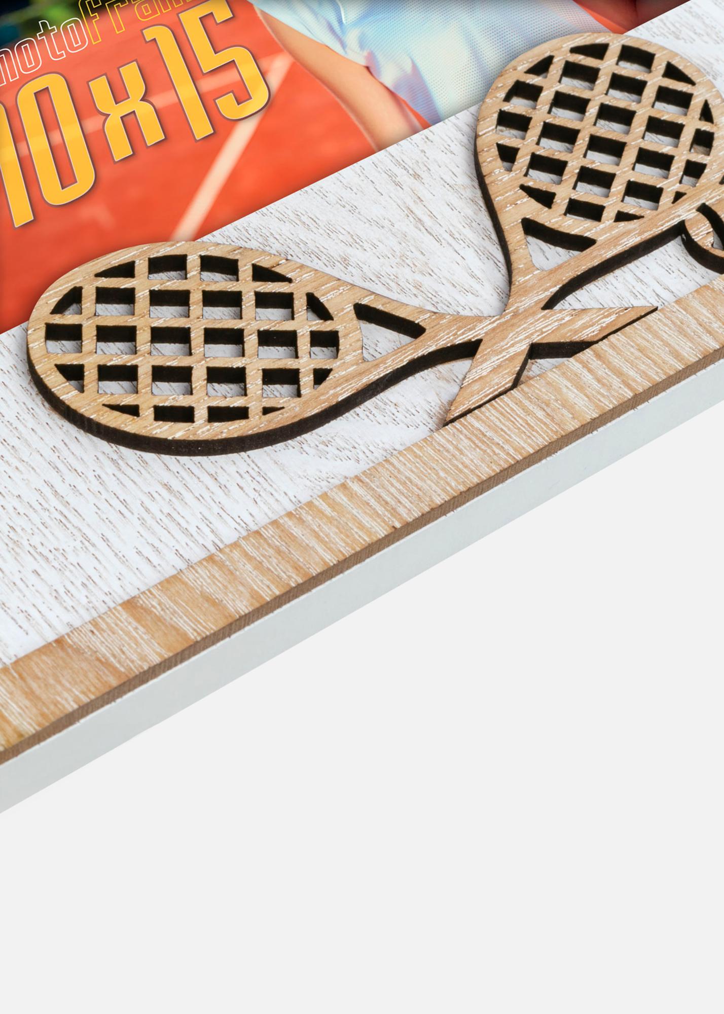 Спортно вдъхновена фоторамка с тенис тема. Украсена с изрязани тенис ракети, перфектна за рамкиране на спомени от тенис корта или спортни дейности. Подходяща за размер на снимка 10x15 см.