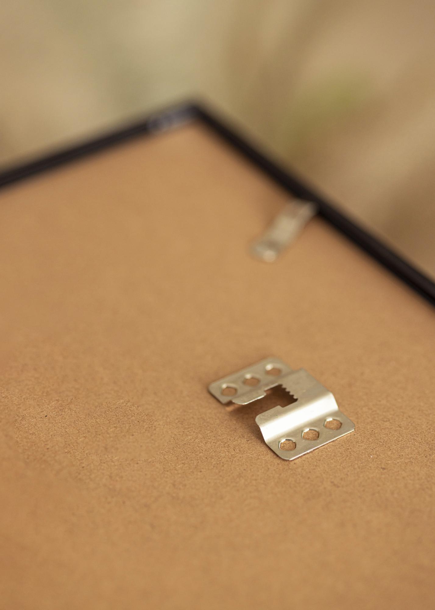 Тази рамка за картини е изработена от композит и е снабдена с акрилно стъкло. Акрилното стъкло е вариант на стъкло, създадено от акрилна пластмаса, което го прави едновременно леко и невъзможно за чупене. Задната част на рамката е изработена от MDF. За да свалите задната част и да поставите снимките си в рамката, завъртете клипсовете на гърба, които държат задната част на място.