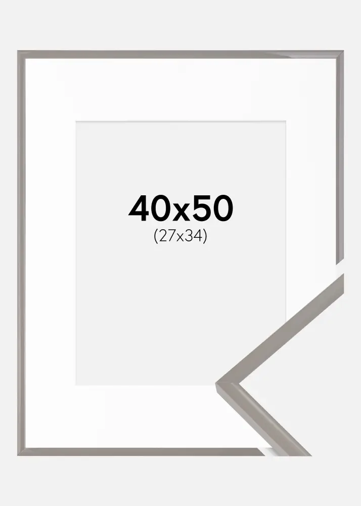 Създайте елегантна стенна галерия с тази изискана сива рамка, която се предлага с бяло паспарту, за да подчертае вашата картина с размери 28x35 см. Тънкият профил на рамката с ширина 9,8 мм и дълбочина 16,5 мм придава стилен вид, докато лъскавата повърхност добавя модерен акцент към вашия интериор.