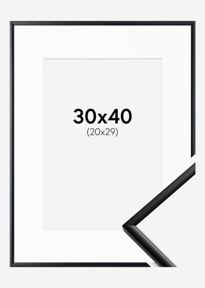 Изпитайте елегантността и чистия дизайн с нашата черна рамка, която идва с бяла паспарту за подчертаване на вашата снимка с размер 21x30 см. Тънкият профил на рамката с ширина 9 мм и дълбочина 14 мм предлага дискретно и стилно рамкиране, докато матовото покритие допринася за изискан израз, който пасва във всяка стая.