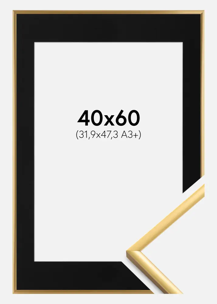 Превърнете дома си в лична художествена галерия с тази елегантна златна рамка с паспарту. Черното паспарту създава дълбока и професионална рамка, която подчертава вашата картина с размер 32,9x48,3 см (A3+). Със своето поразително съчетание на златна рамка и черно паспарту тази рамка създава изискана контрастност, която привлича погледа на зрителя и подчертава цветовете и детайлите на картината.