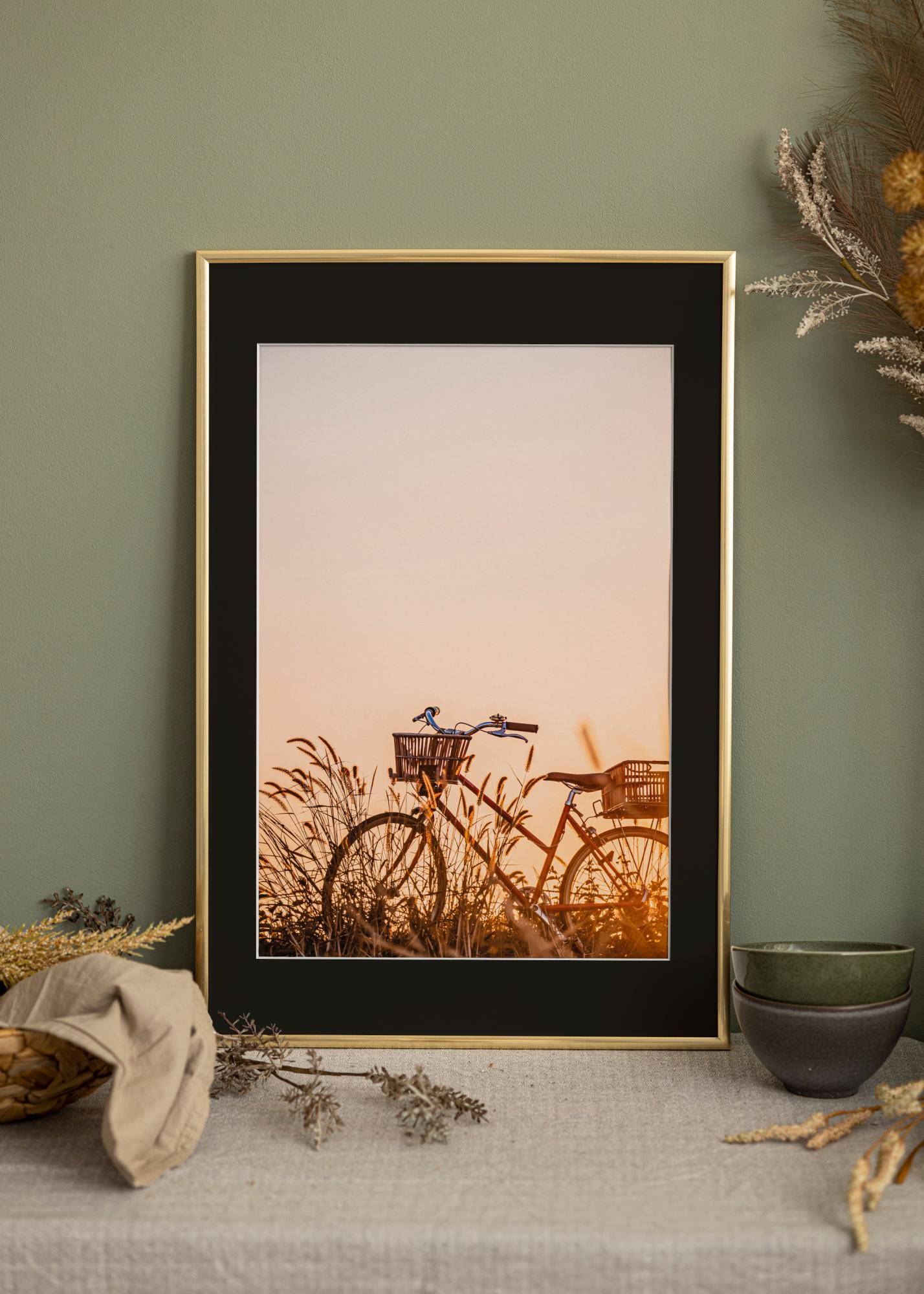 Превърнете вашата любима снимка или произведение на изкуството в истински привличащ погледа акцент с нашата елегантна златна рамка с черно паспарту. Блестящата златна рамка, с ширина от 9,8 мм и дълбочина от 16,5 мм, осигурява луксозна обковка, която допълва вашето изображение перфектно. Дълбокият черен тон на паспартутото подчертава мотива и придава професионален завършек.