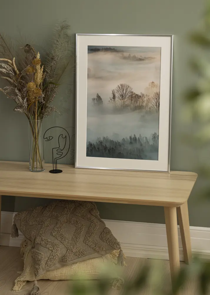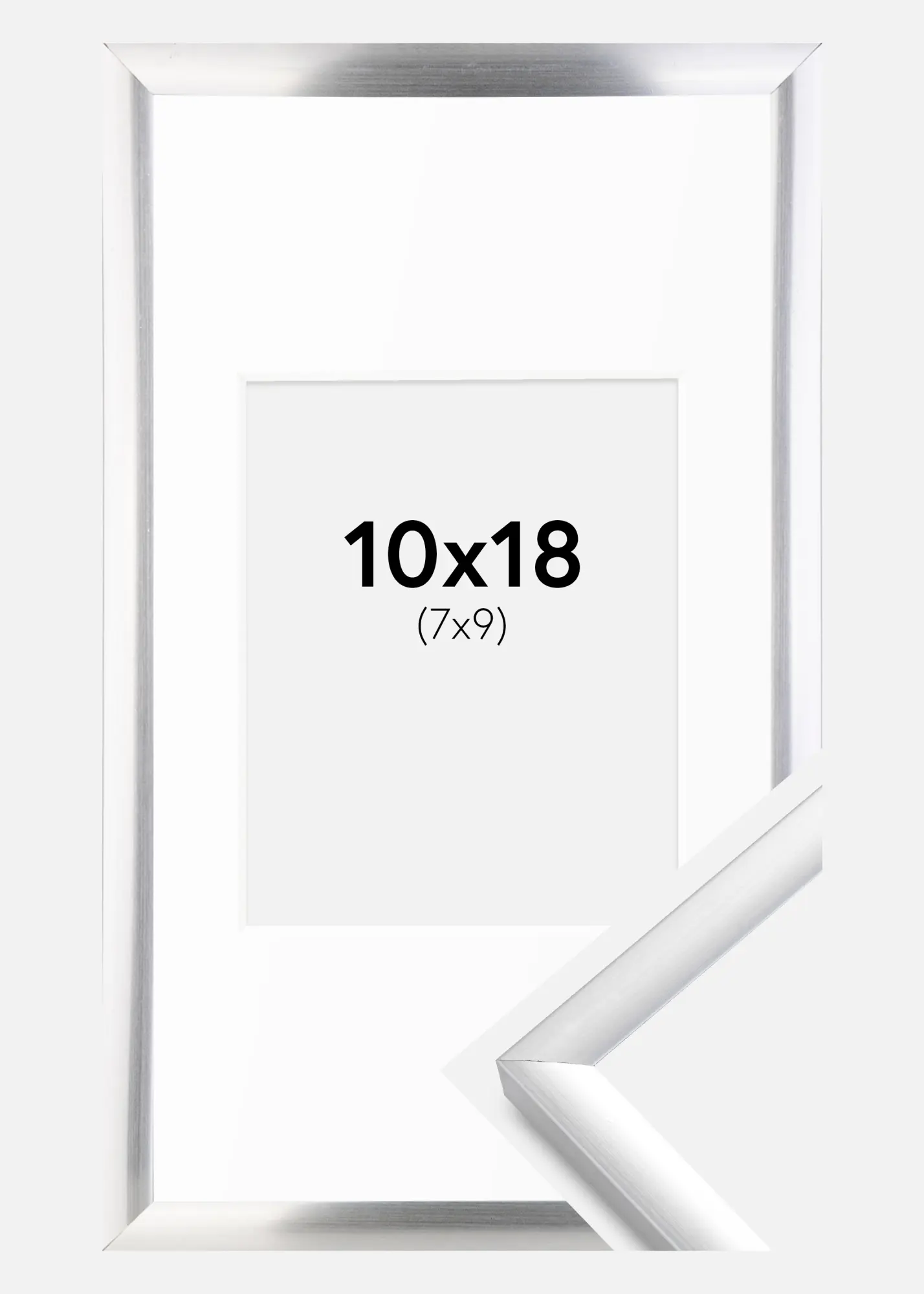 Превърнете вашите снимки в произведения на изкуството с нашата елегантна сребриста рамка, комплектована с изчистен бял паспарту. Тази рамка е идеална за подчертаване на вашите 8x10 cm снимки и предоставя изискана нишка. С матово покритие и тънка ширина от 9 mm, тази рамка предлага модерно и минималистично усещане, което се вписва в повечето интериорни стилове.